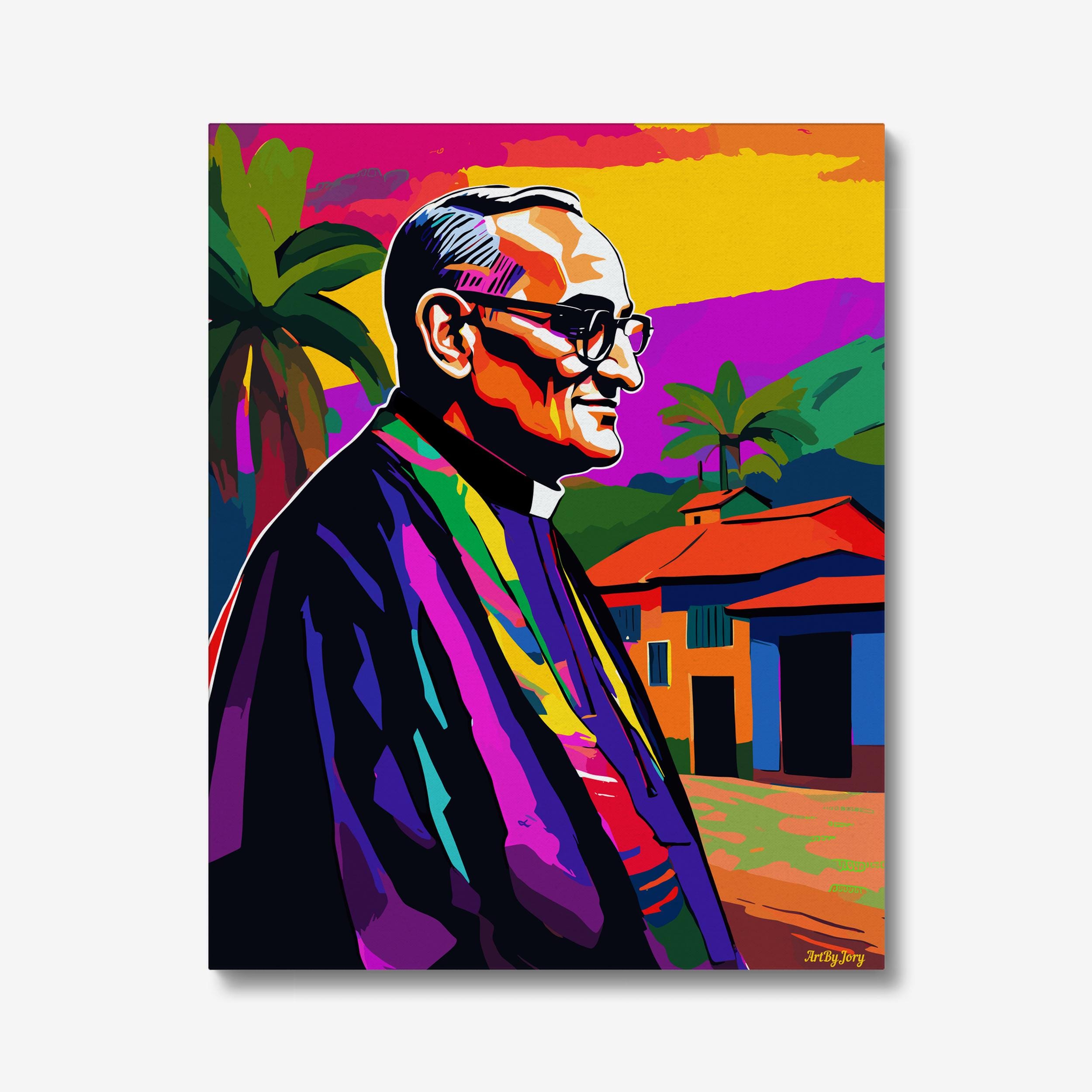 Available in a variety of high-quality print options, including Giclee on premium white paper for rich, vibrant colors or a professionally stretched canvas for a gallery-quality display. Each piece is crafted with care to bring out the bold, inspiring essence of this revered saint and social justice icon.