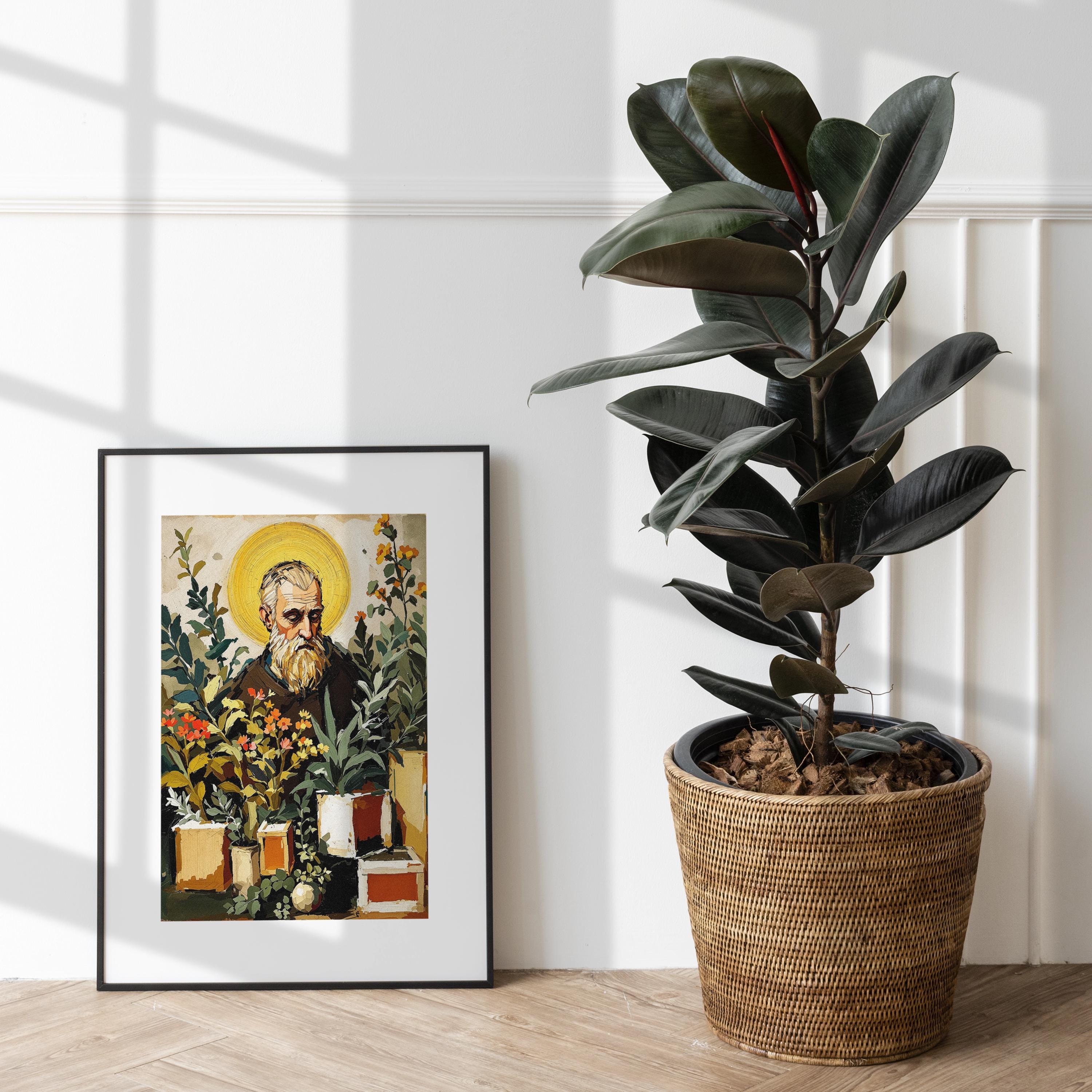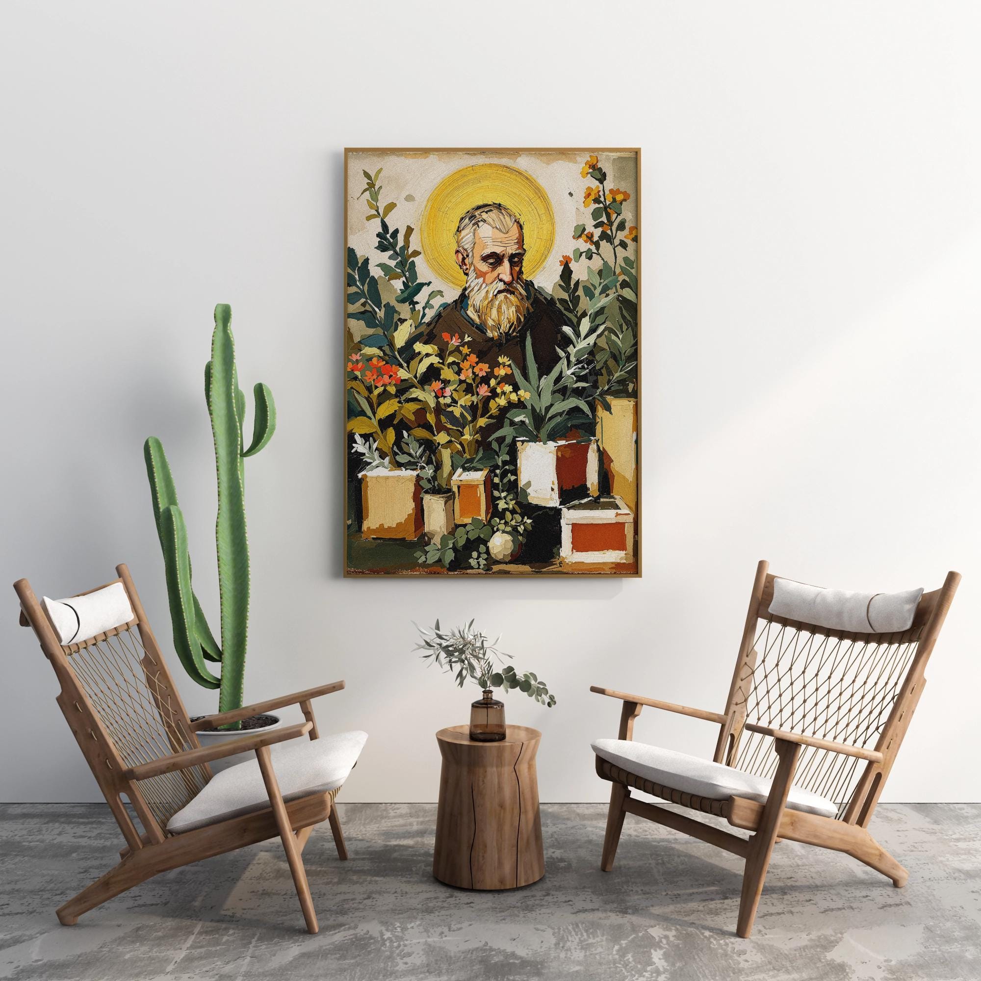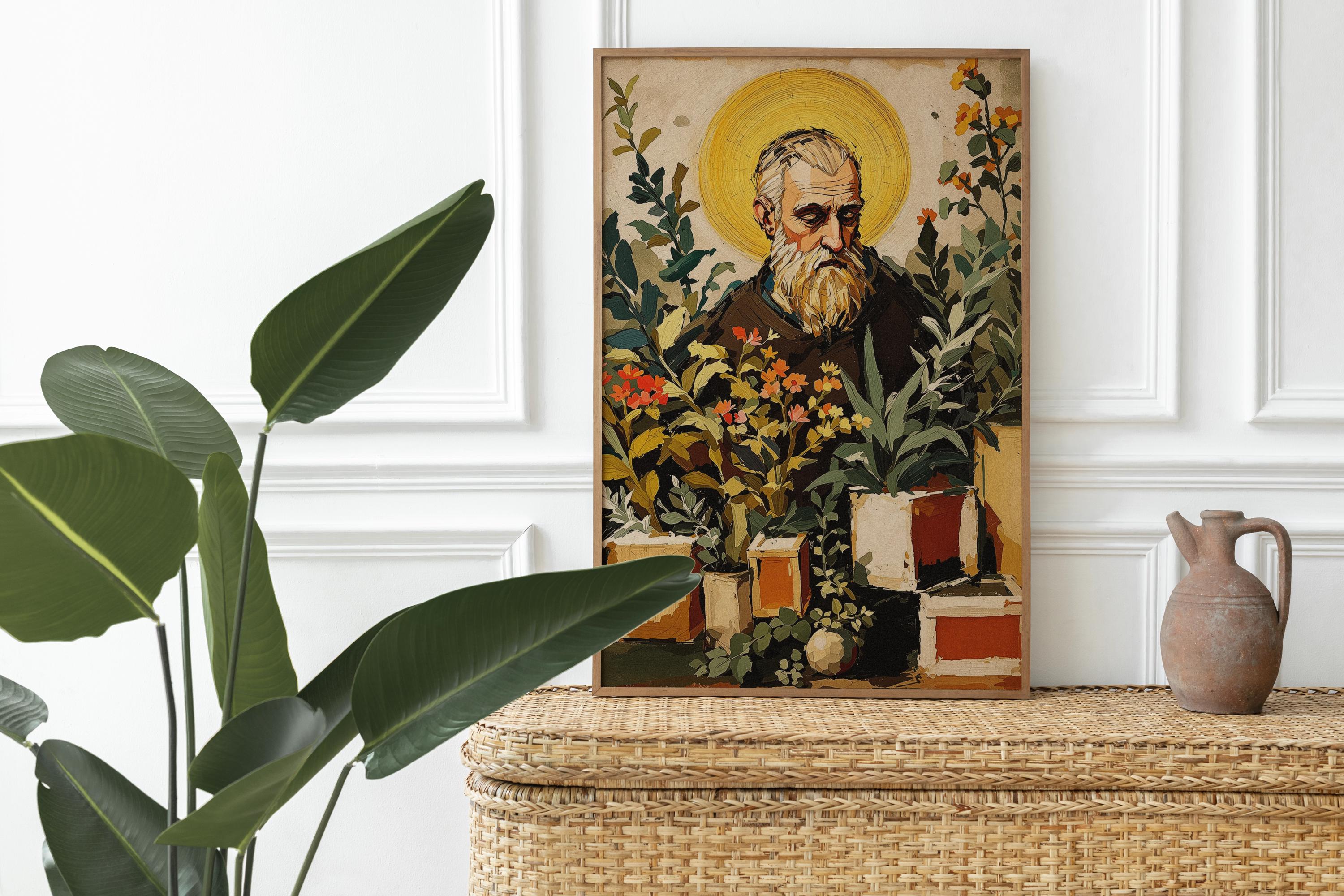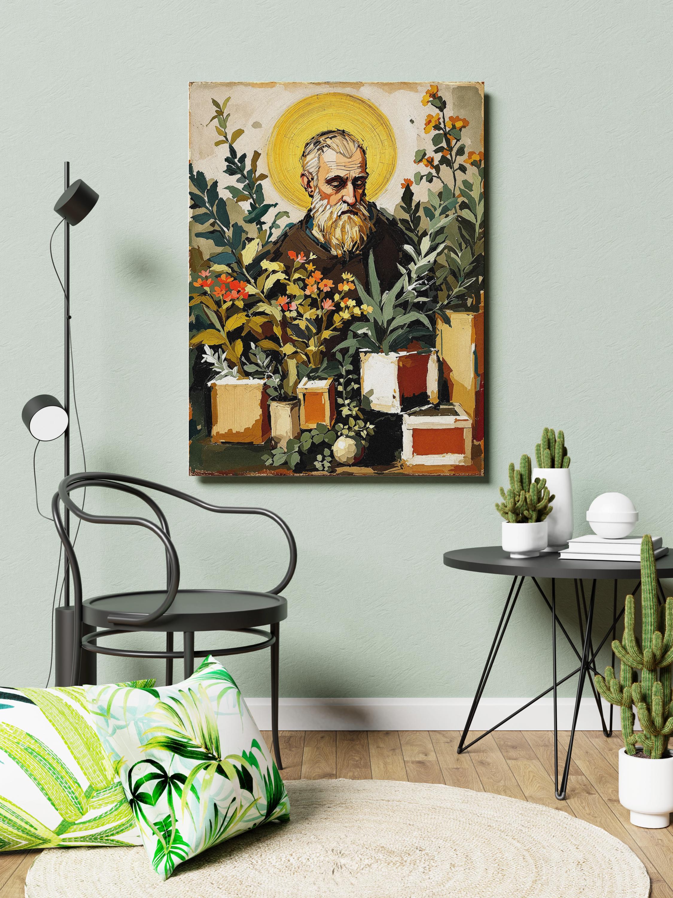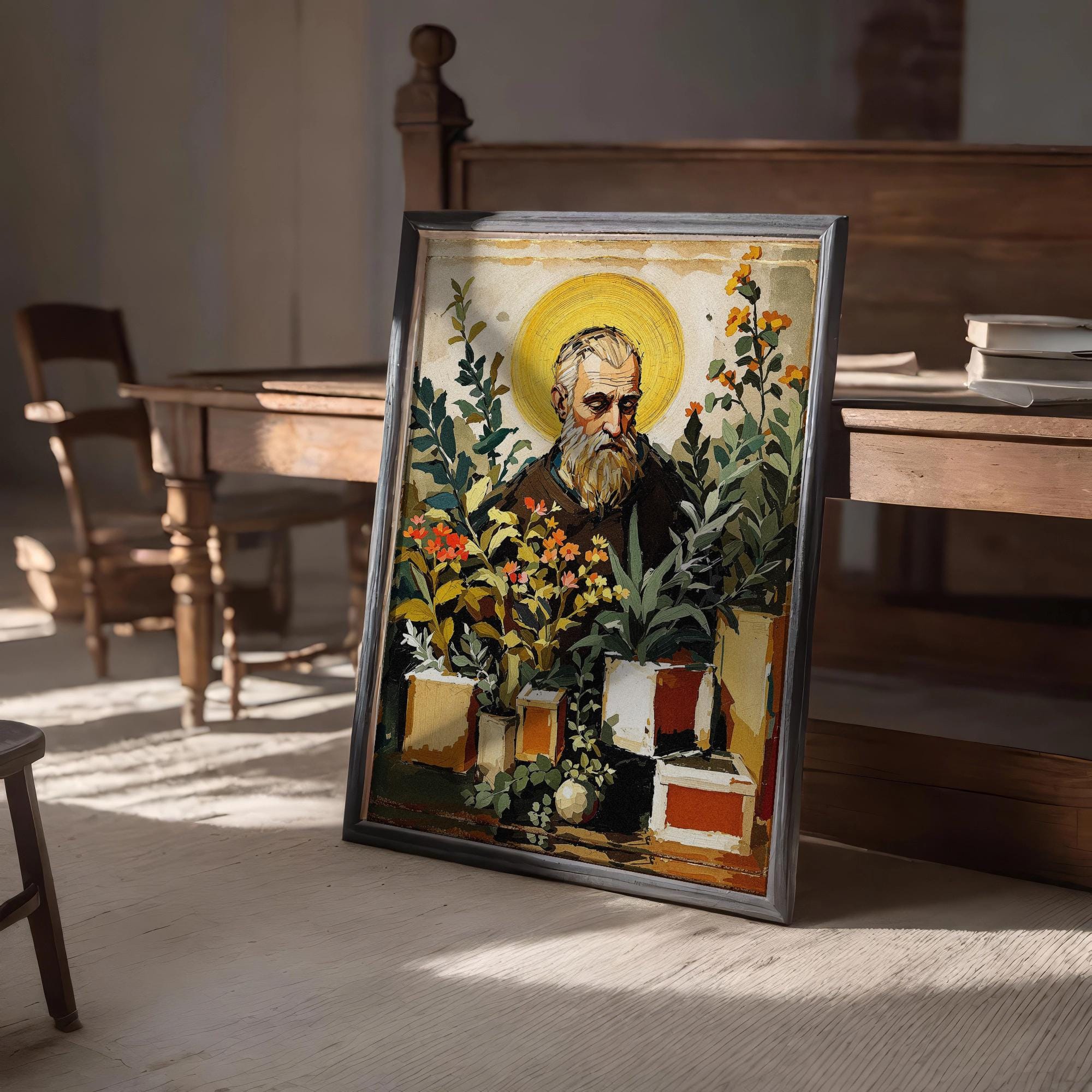 Ideal as a Catholic gift, this saint portrait makes a meaningful addition to a baptism, confirmation, or religious celebration. It also serves as a thoughtful gift for gardeners, herbalists, or anyone who finds inspiration in Saint Fiacre's story and virtues.
