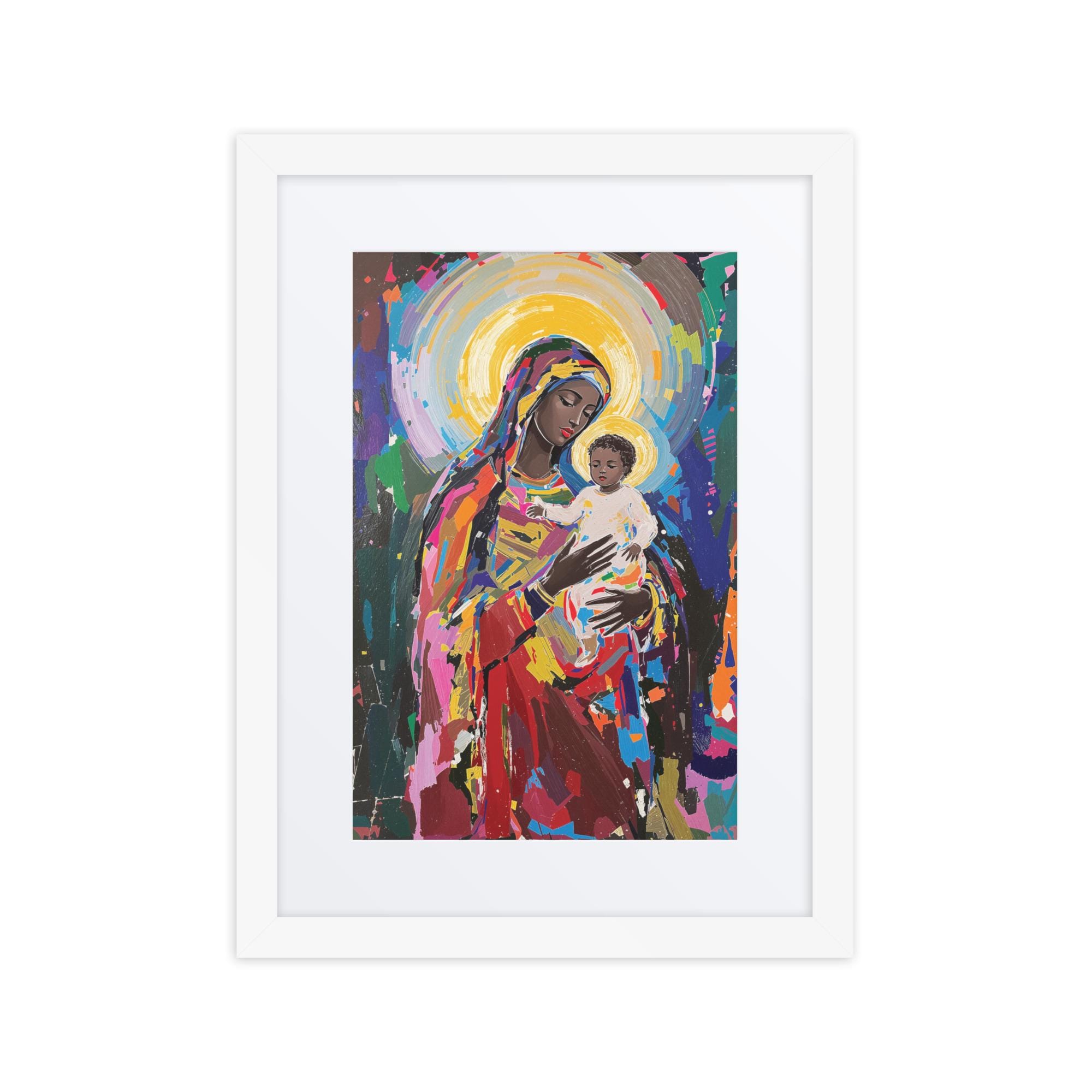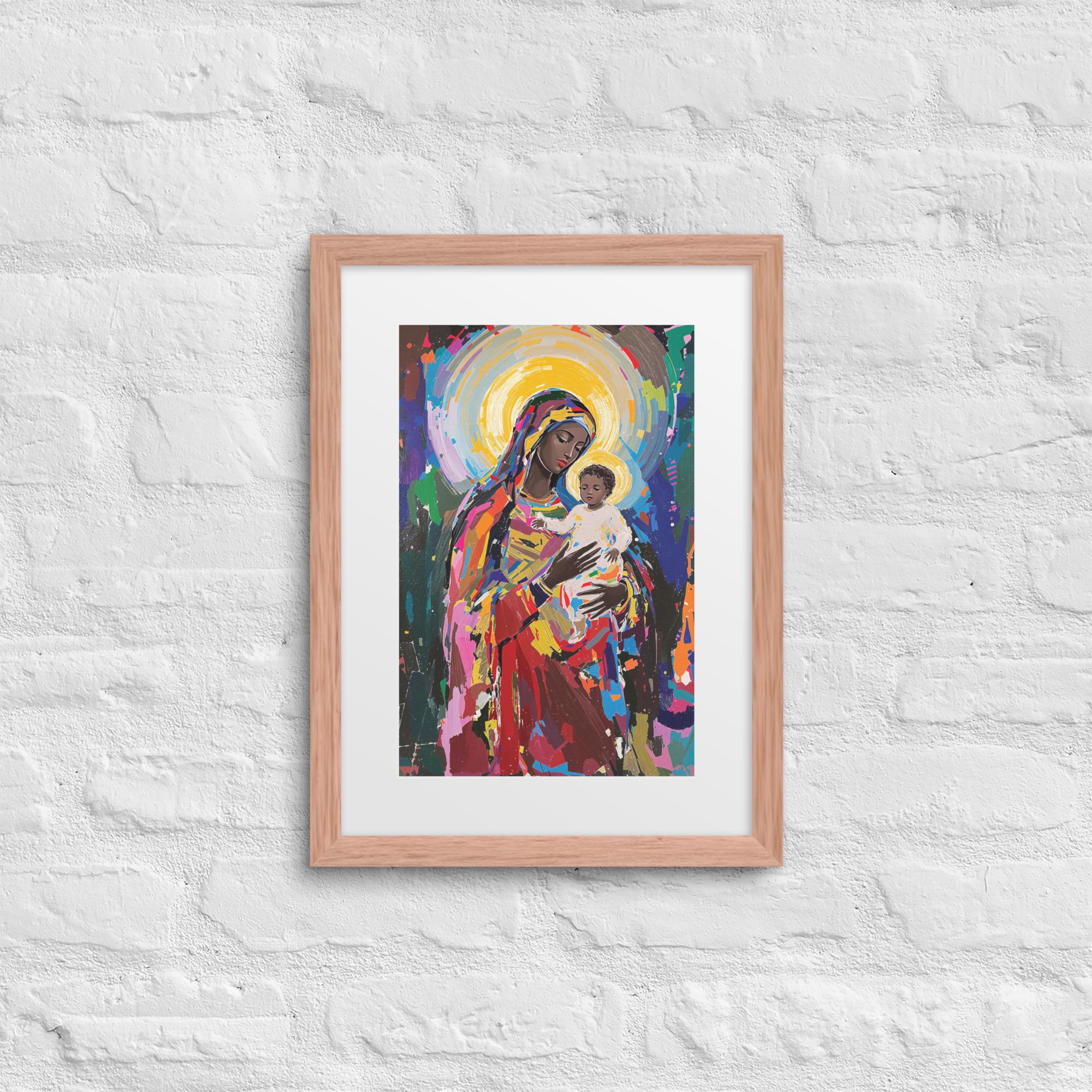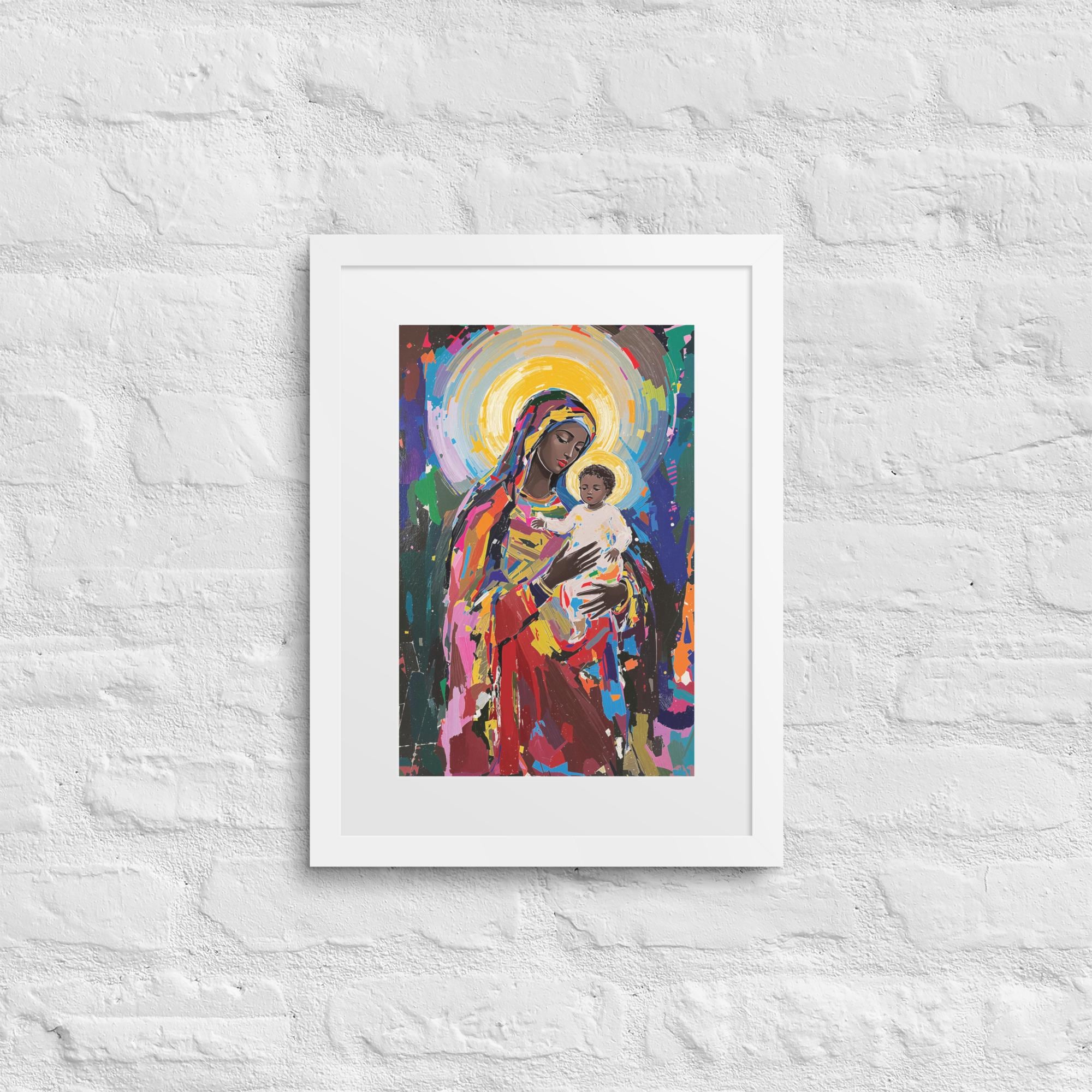 Printed on thick matte paper, this art piece features vivid colors and intricate details that bring the sacred image to life. The included frame, measuring 0.75 inches, provides a sleek, polished look that highlights the iconic depiction of Our Lady of Czestochowa, making it a perfect gift for Catholic devotion or a beautiful addition to your religious collection.