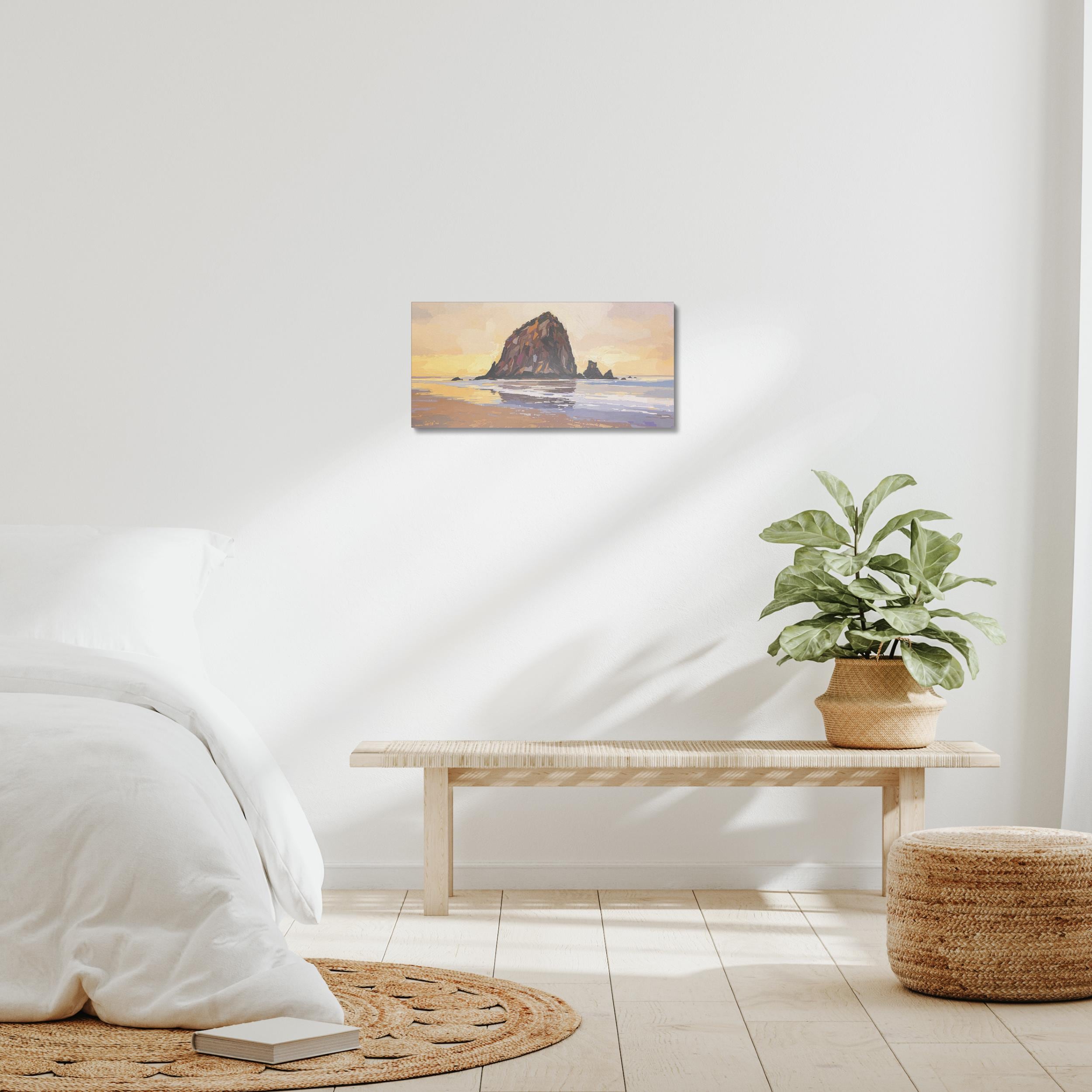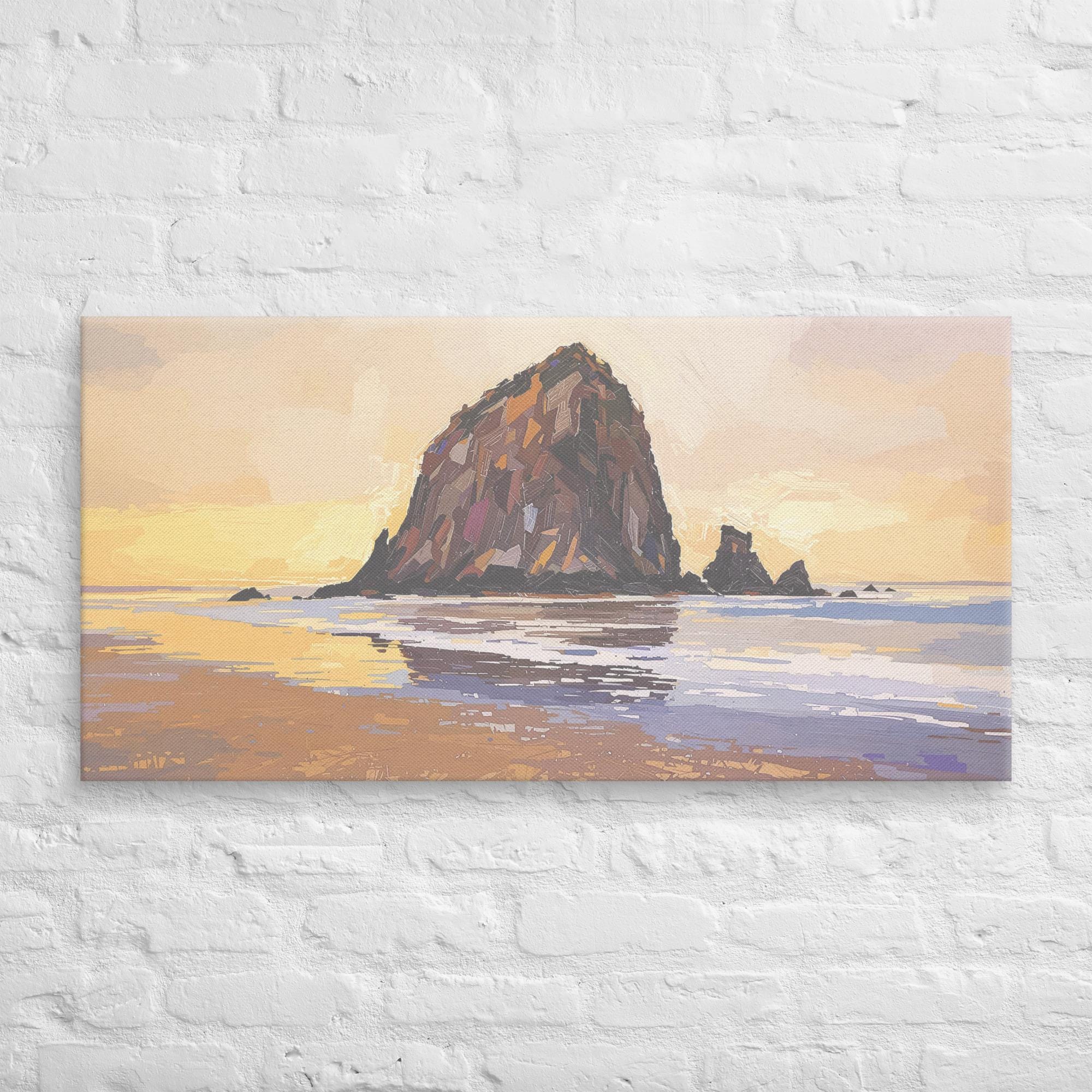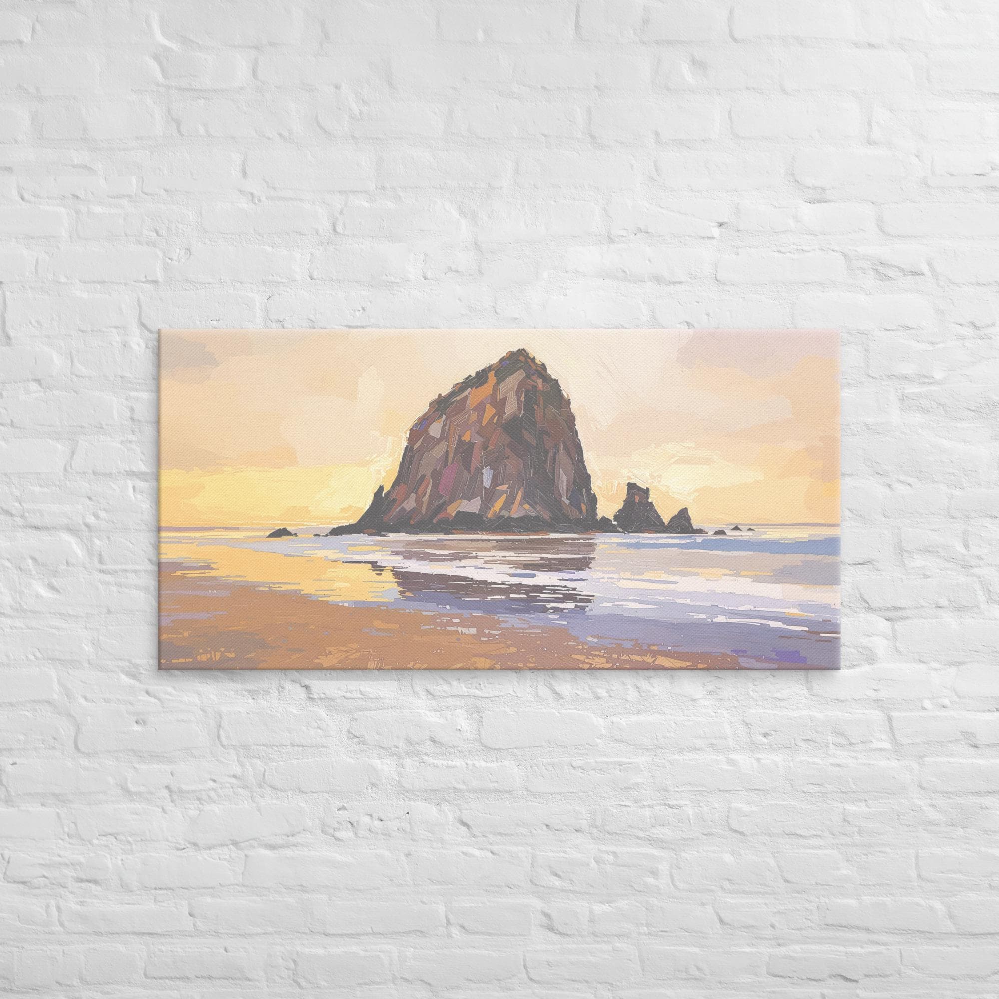 Bring the breathtaking beauty of the Oregon Coast into your home with our Haystack Rock Oregon Coastal Ocean-scape Canvas Print: Vivid Seascape Wall Art. This stunning piece captures the iconic Haystack Rock in Cannon Beach with vibrant, expressive brushstrokes that evoke the natural wonder and rugged charm of the Pacific Northwest. Perfect for coastal lovers, art enthusiasts, and anyone inspired by ocean scenes, this canvas transforms a beloved natural landmark into a captivating work of art that adds warmth, personality, and a touch of the sea to any space.