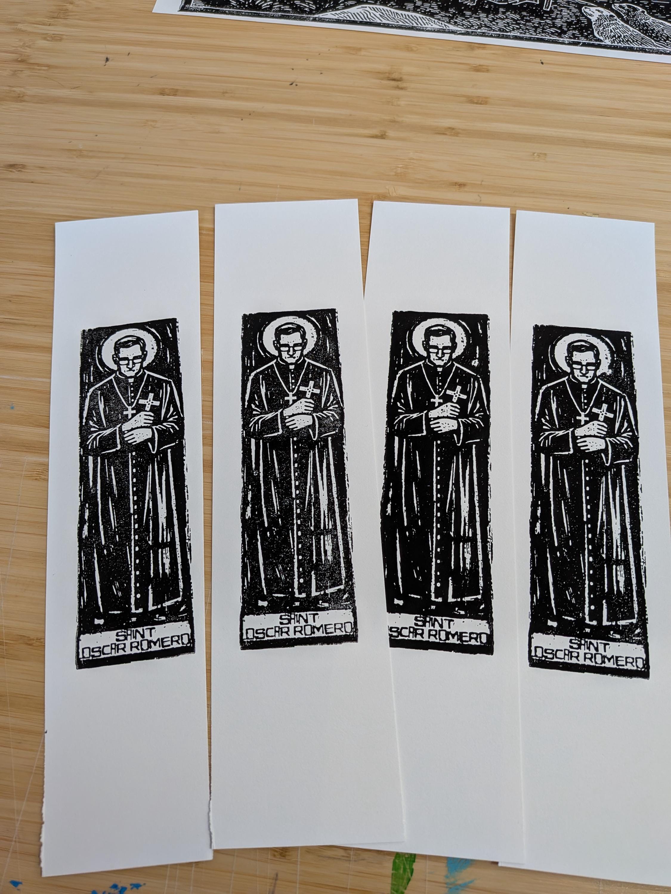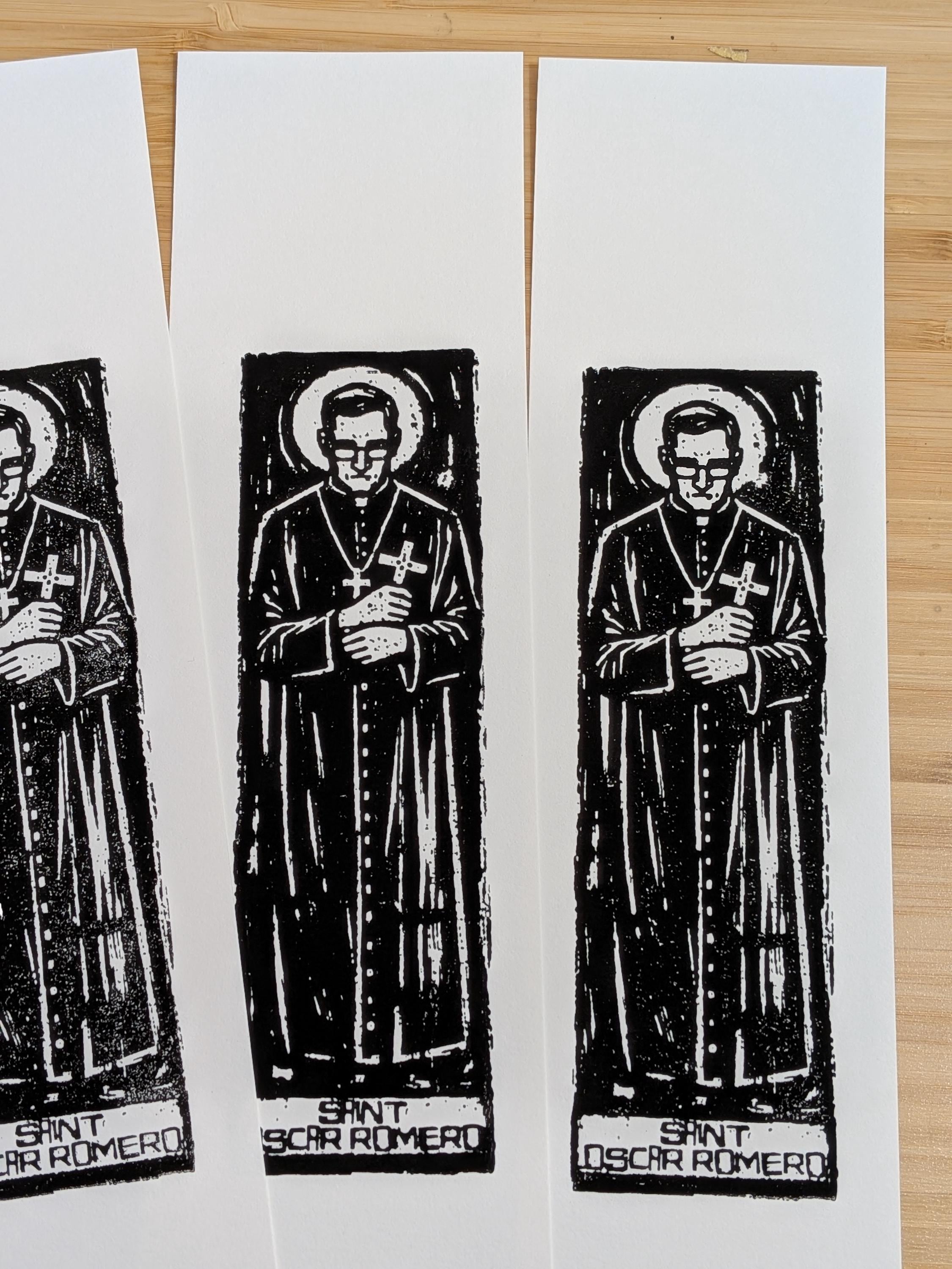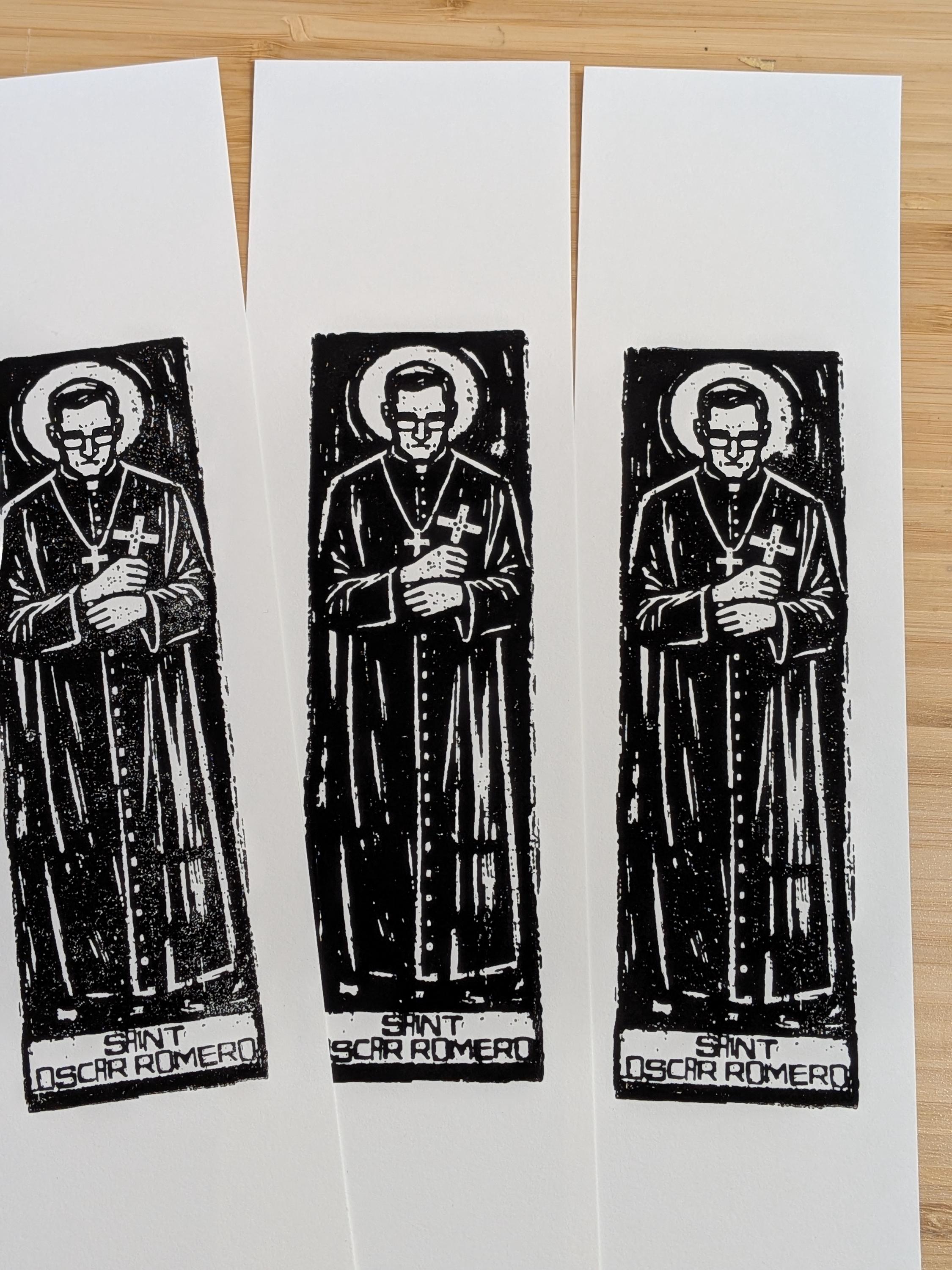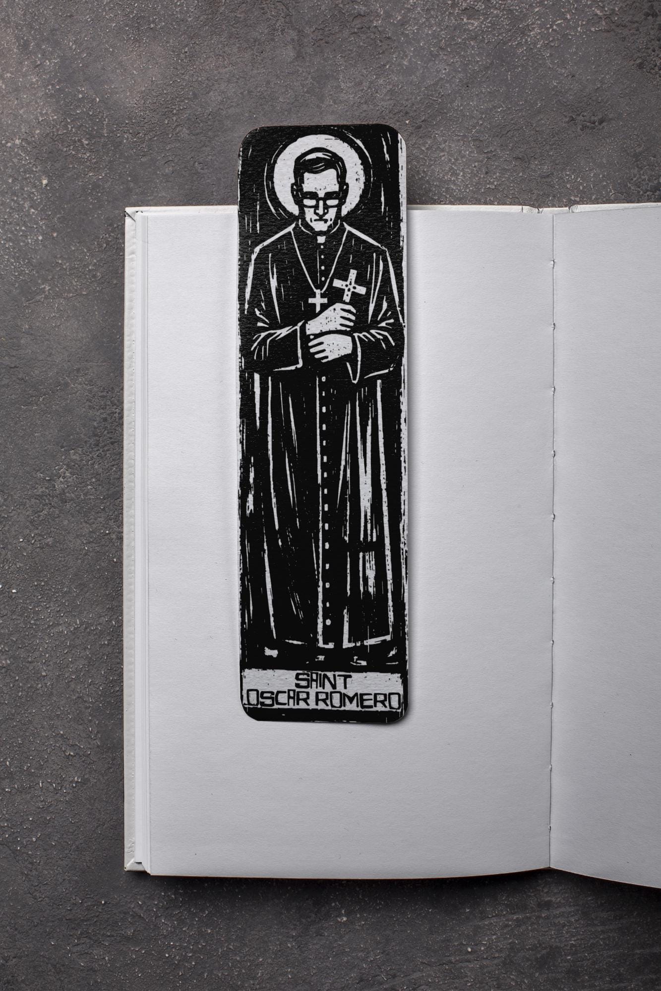 Saint Oscar Romero Bookmark Set, Relief Print, laminated and sturdy.