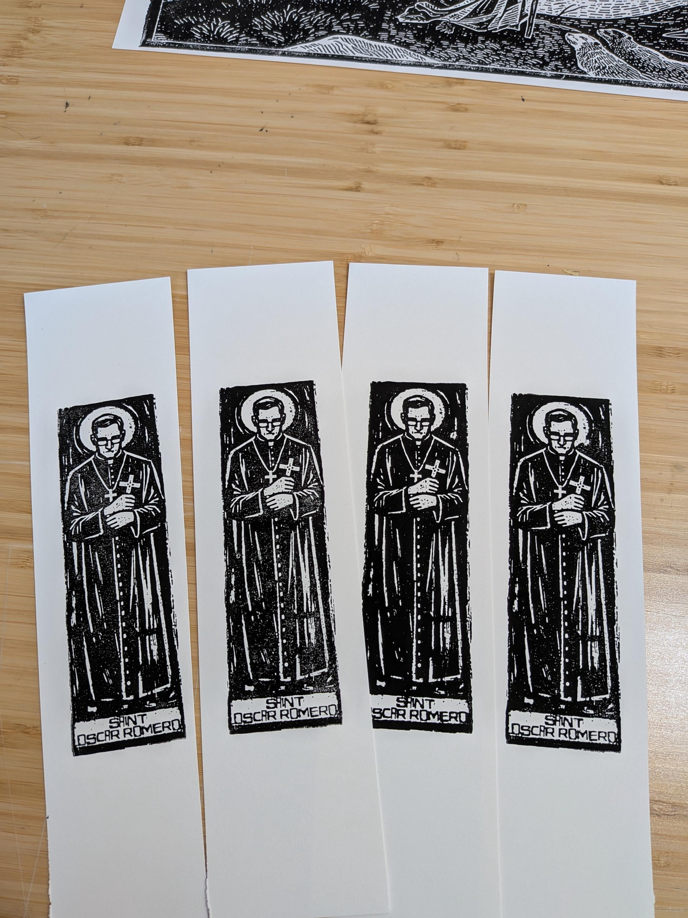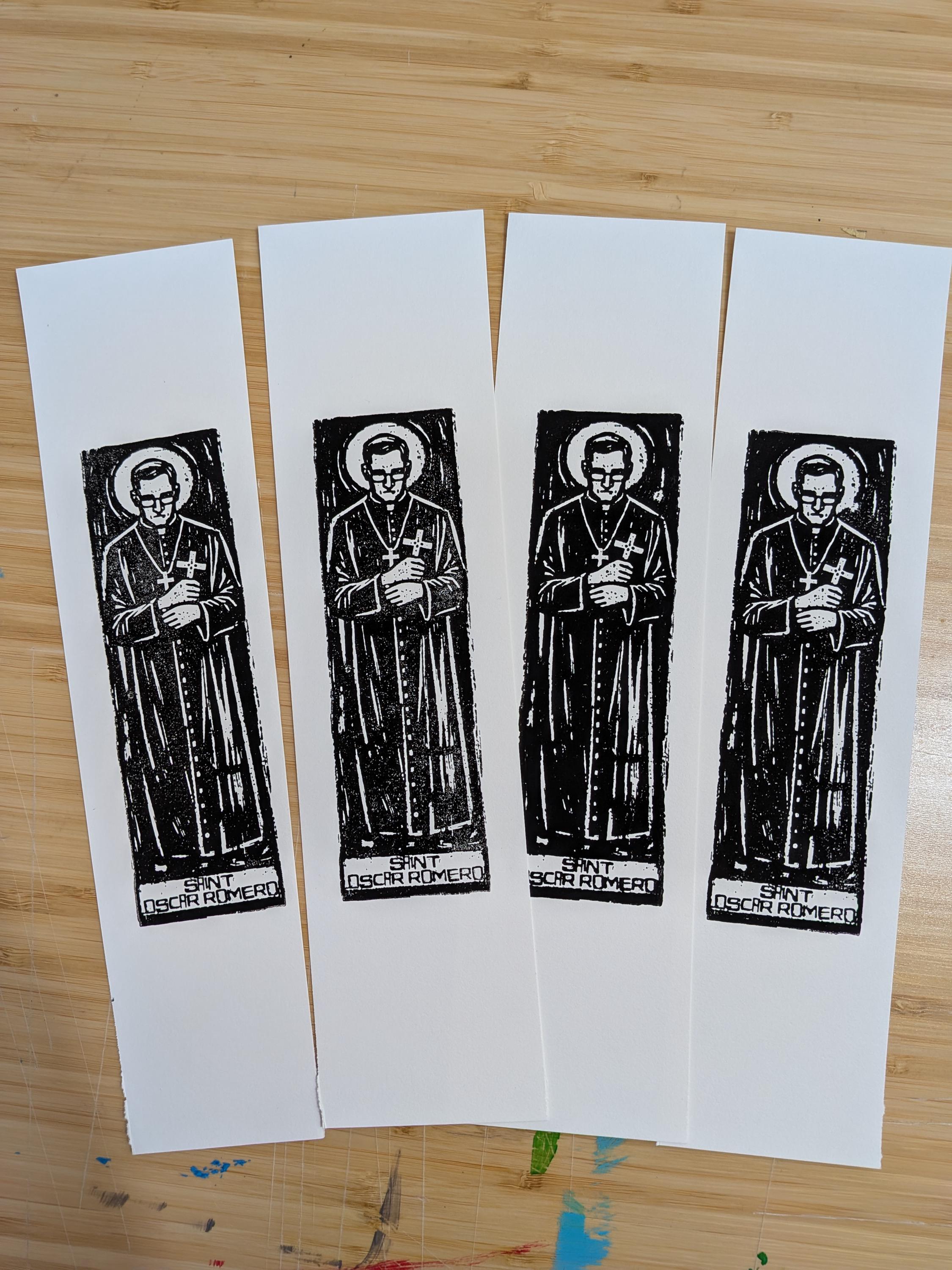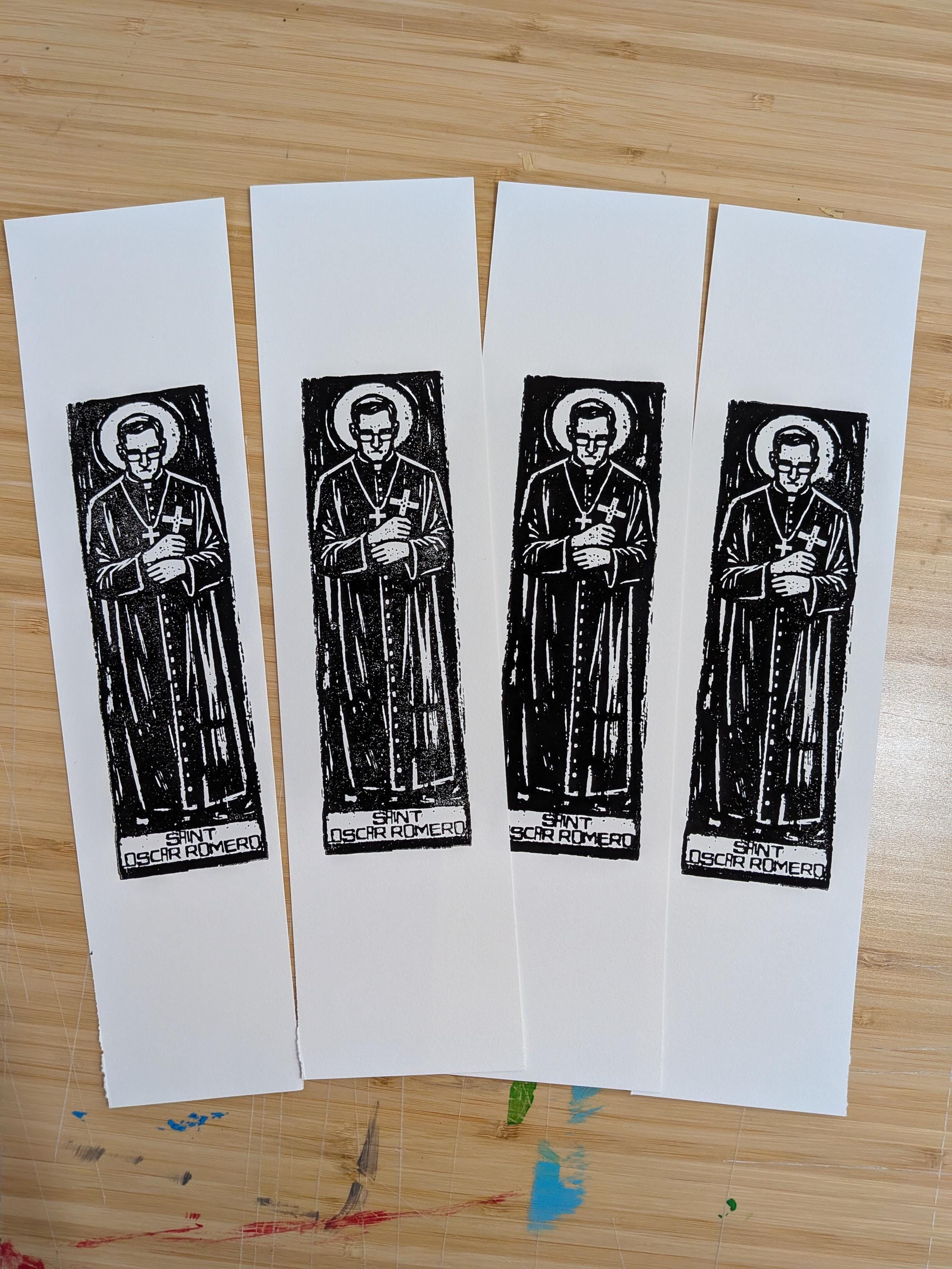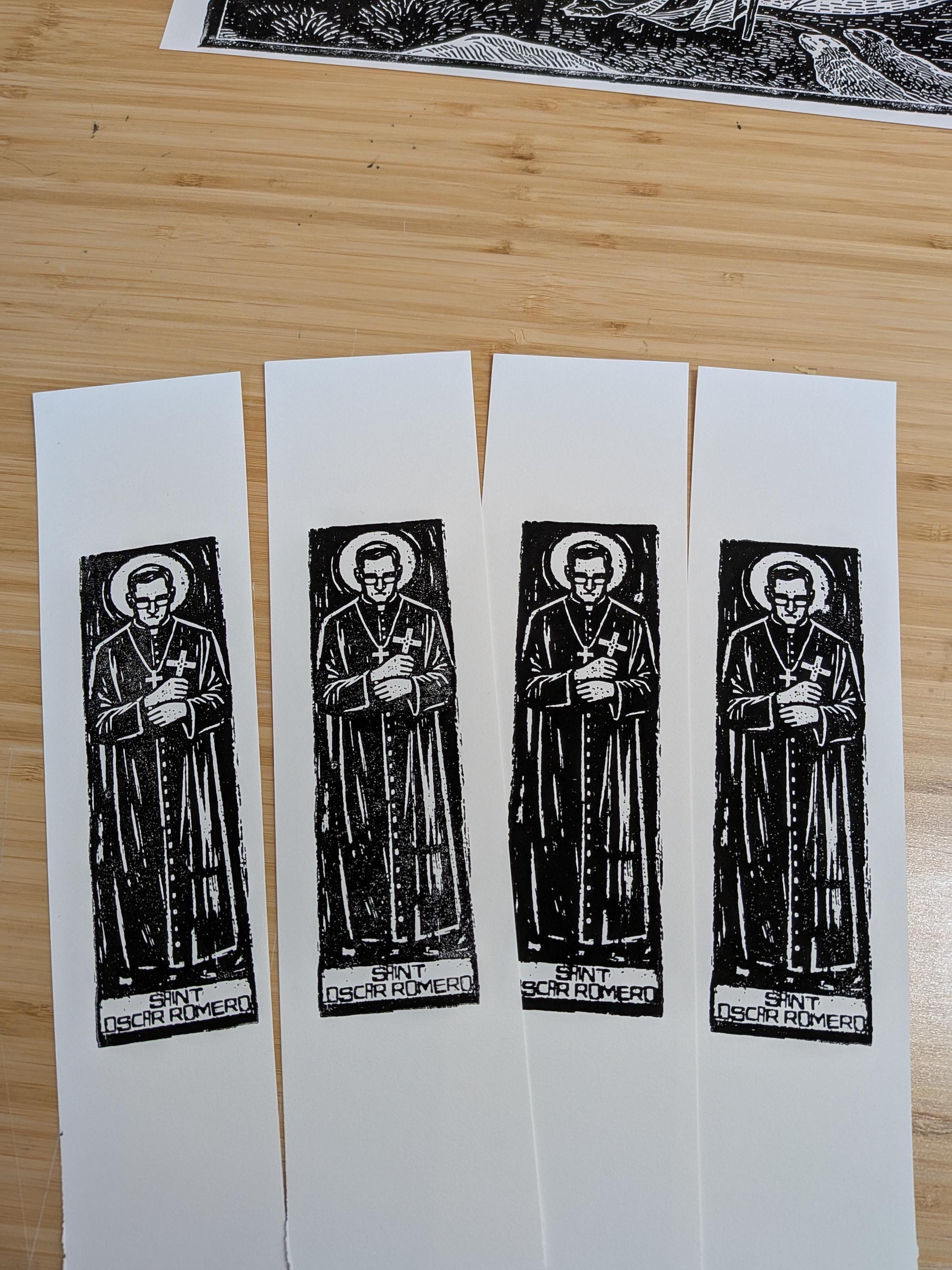 Saint Oscar Romero Bookmark Set, Relief Print, laminated and sturdy.