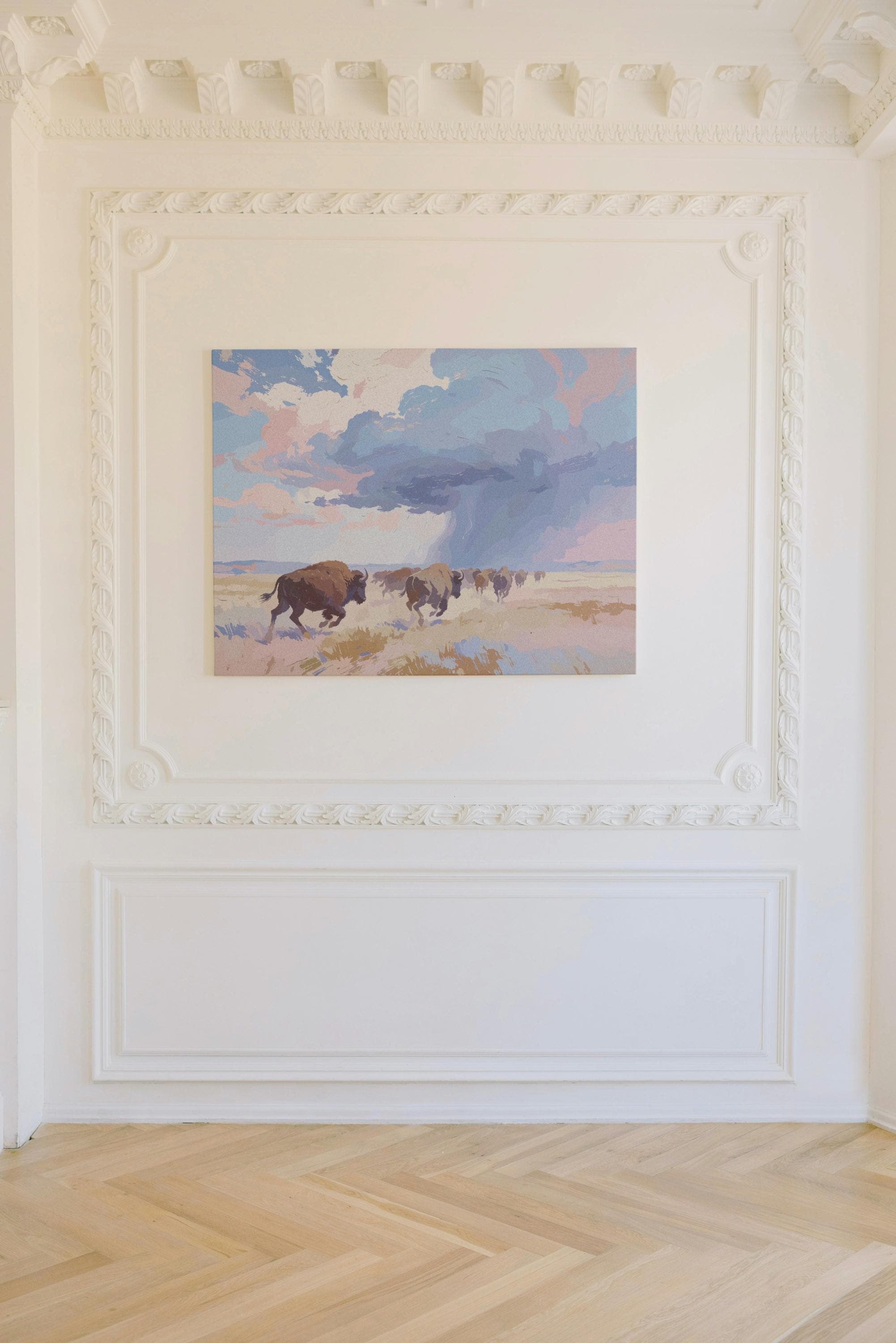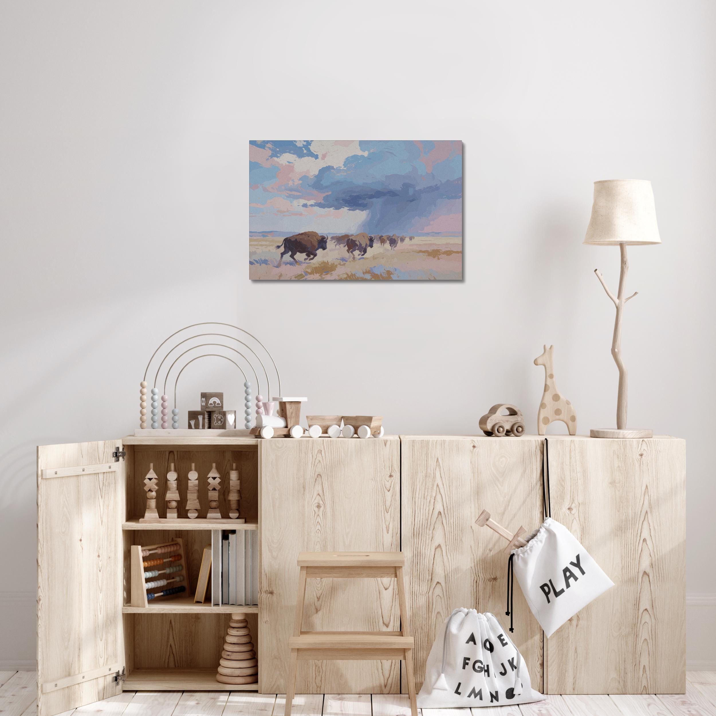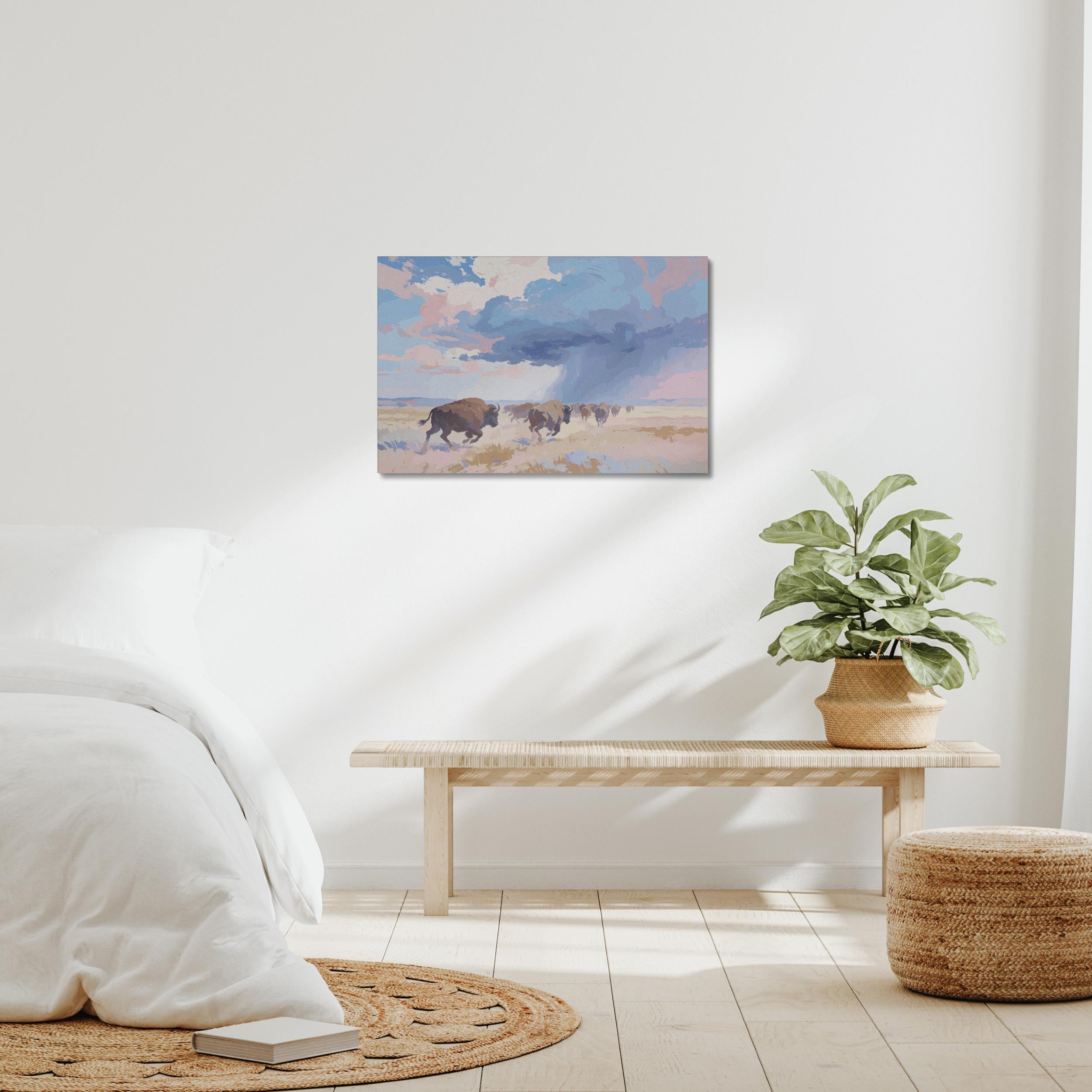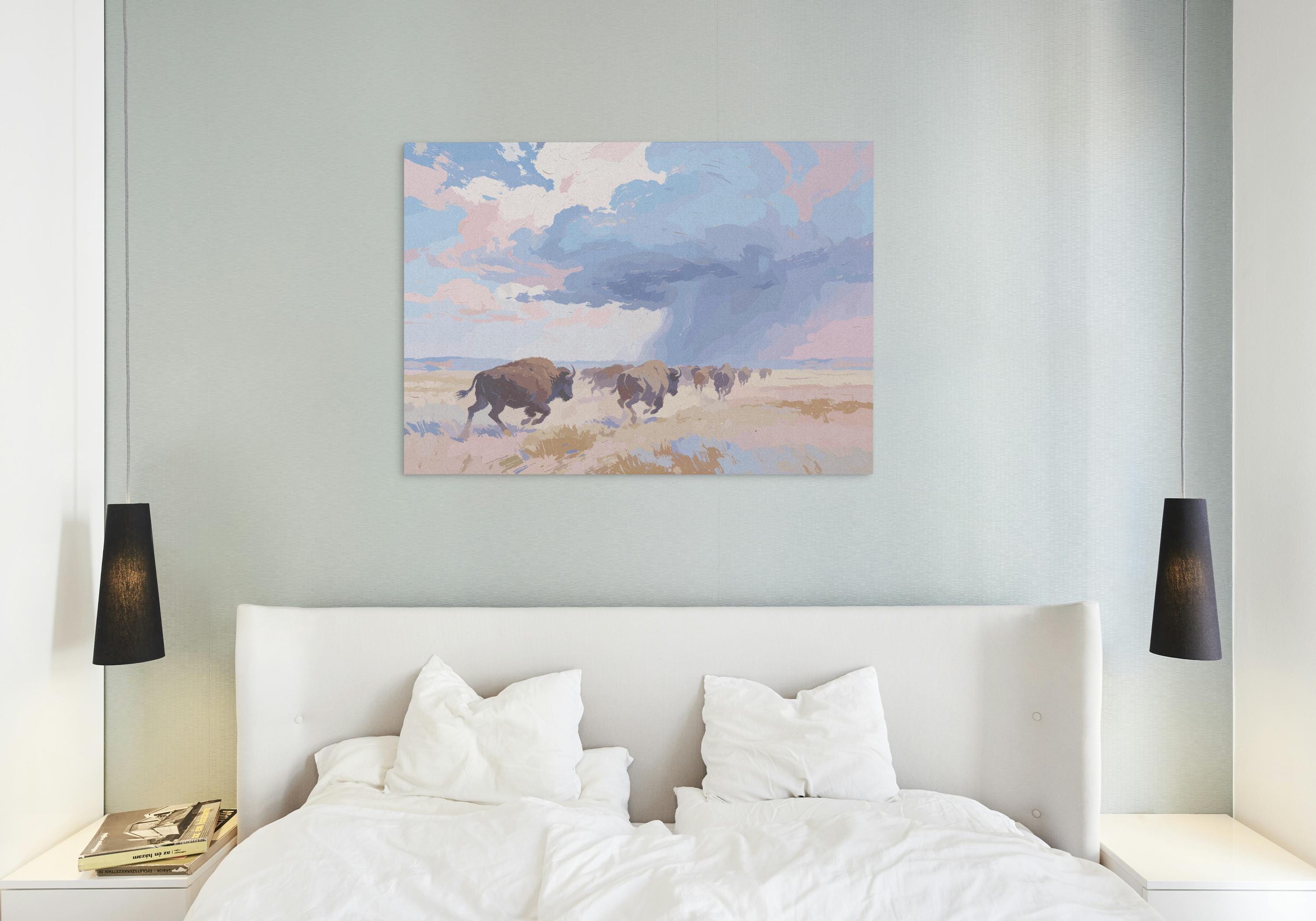 This artwork is a meaningful gift for nature lovers, adventurers, or anyone who appreciates the majestic presence of American wildlife. Easy to hang and maintain, it transforms any space into a celebration of resilience and natural beauty. Bring the storm to your walls and let this striking buffalo piece inspire strength and courage every day.