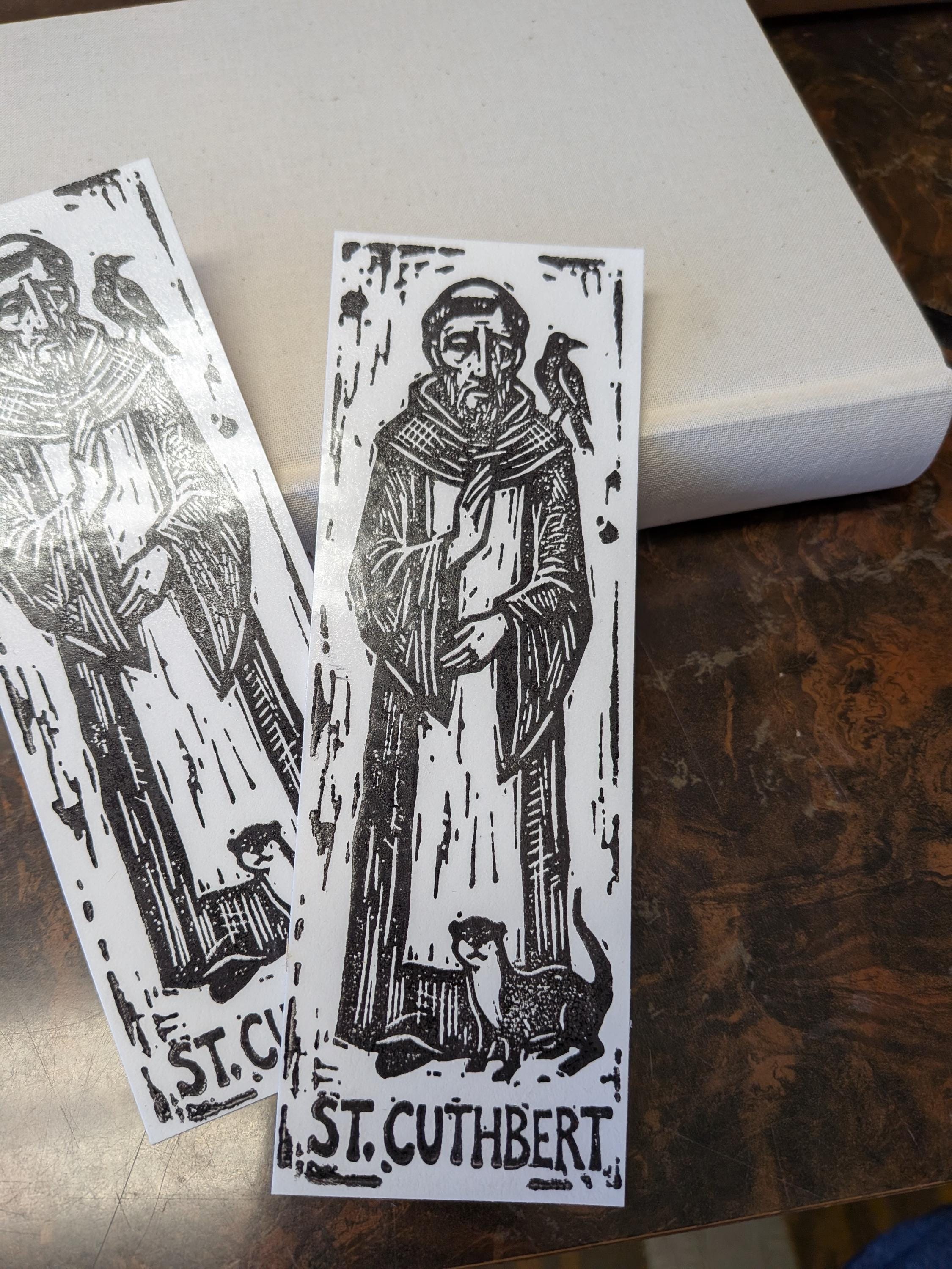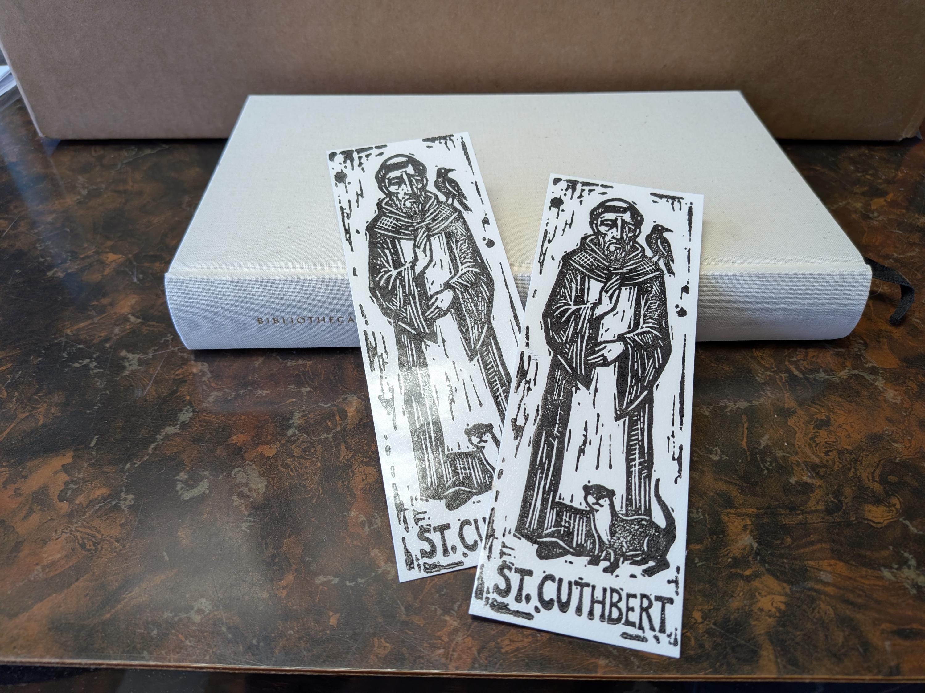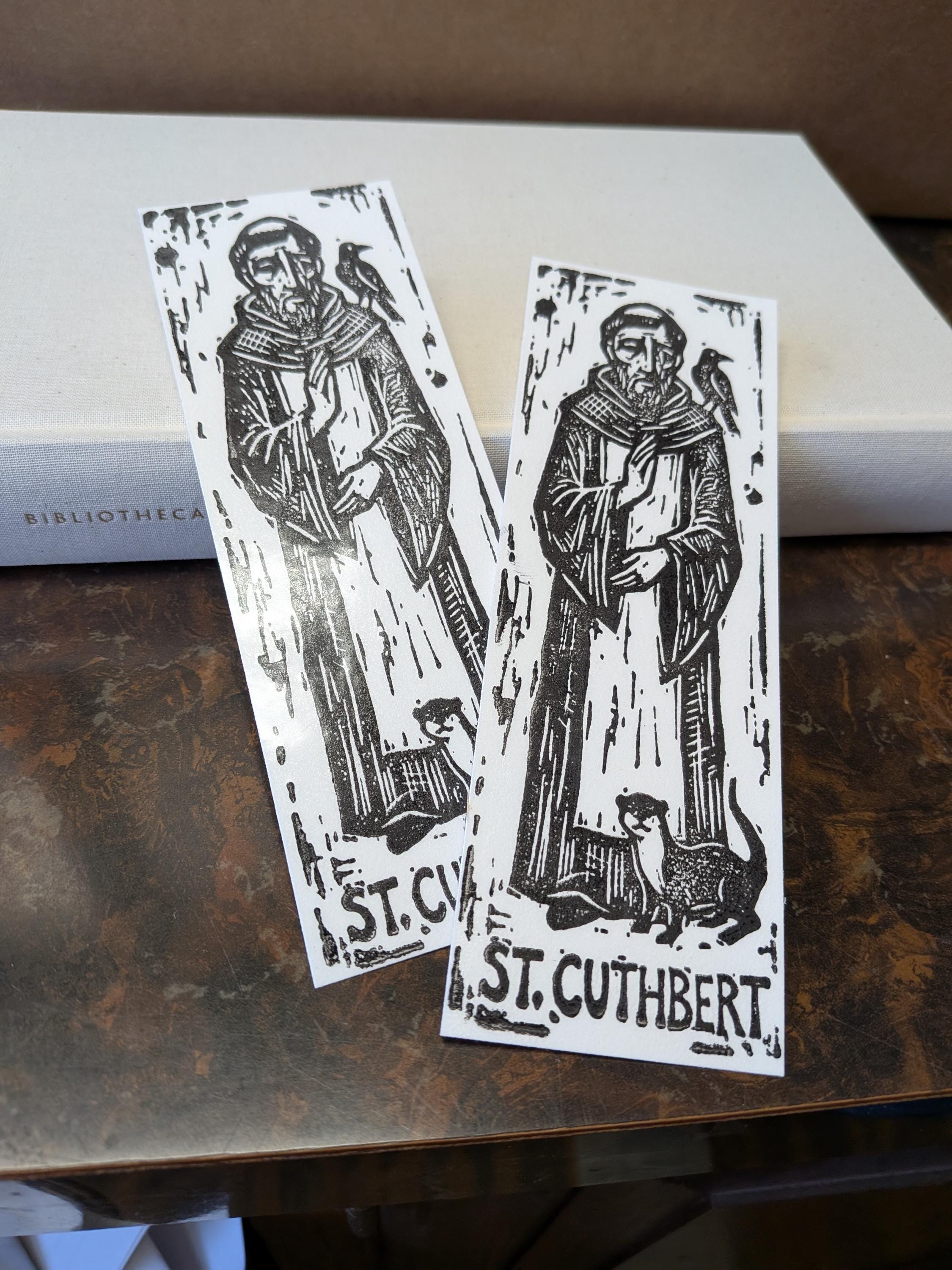 Saint Cuthbert Bookmark Sets, Relief Print Printed on Vintage Galley Press, laminated and sturdy!