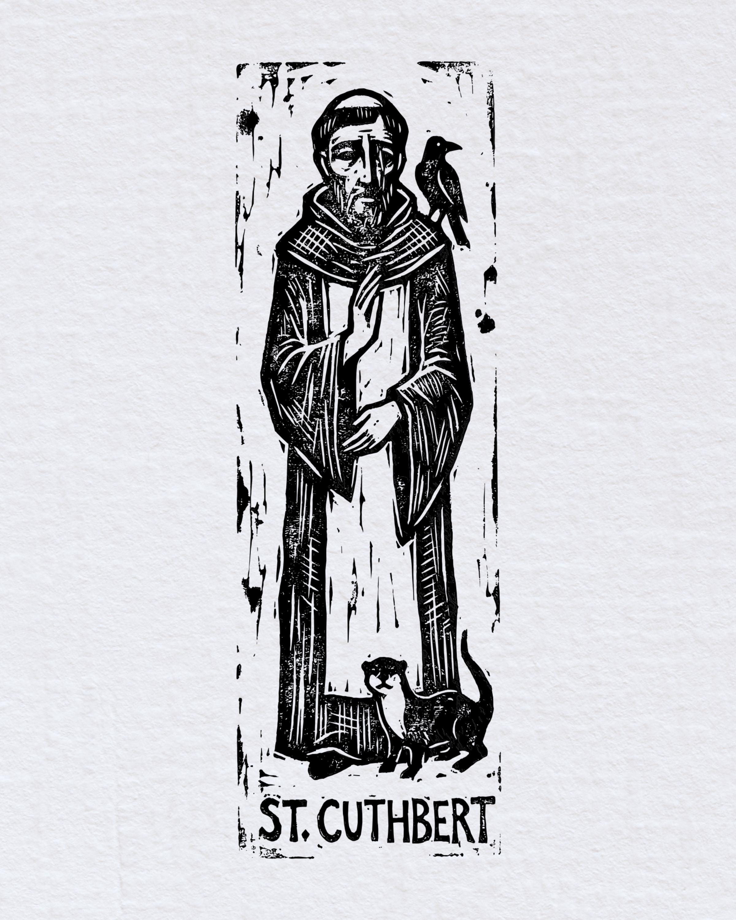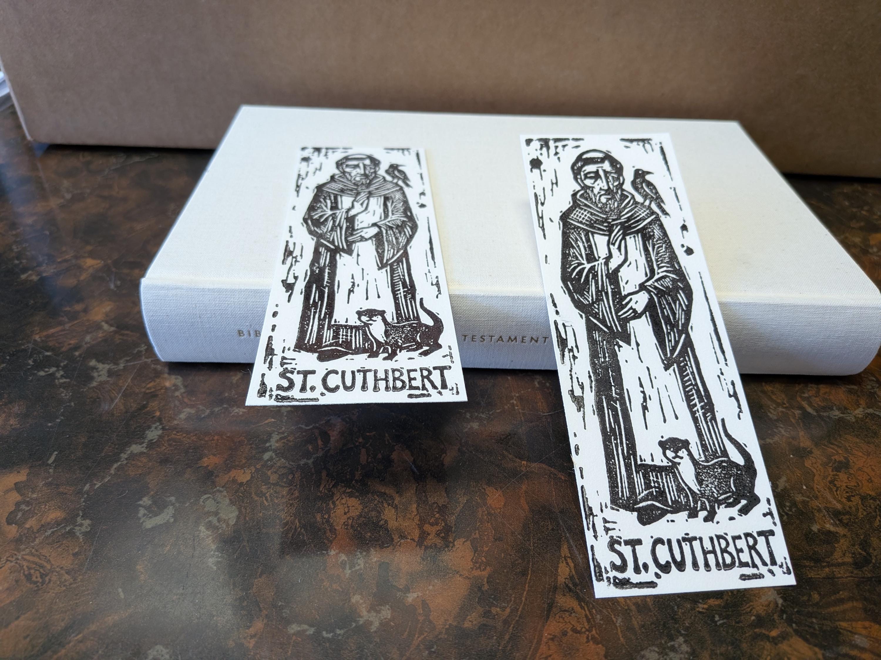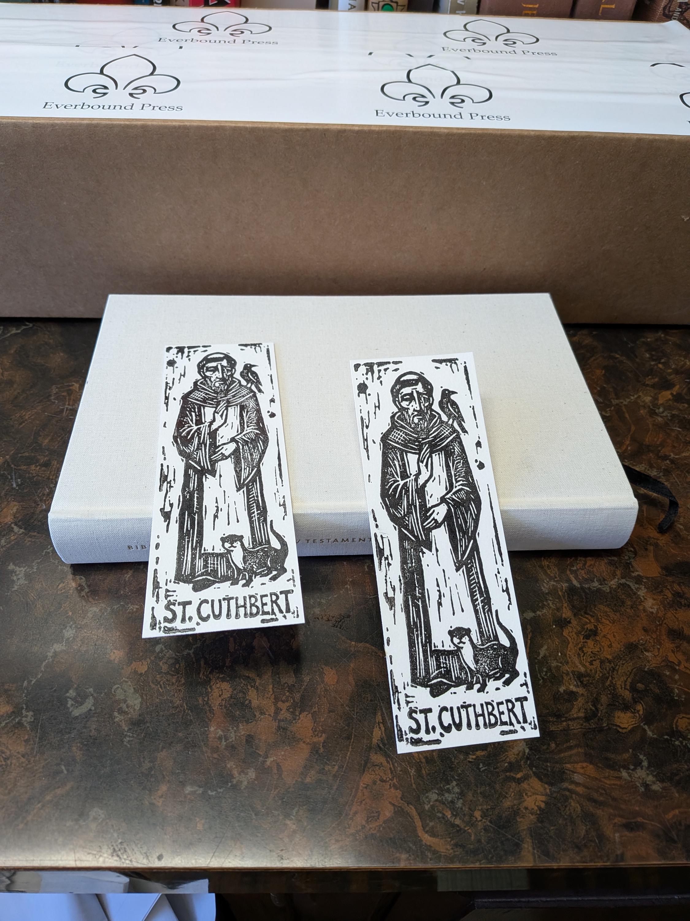 Saint Cuthbert Bookmark Sets, Relief Print Printed on Vintage Galley Press, laminated and sturdy!