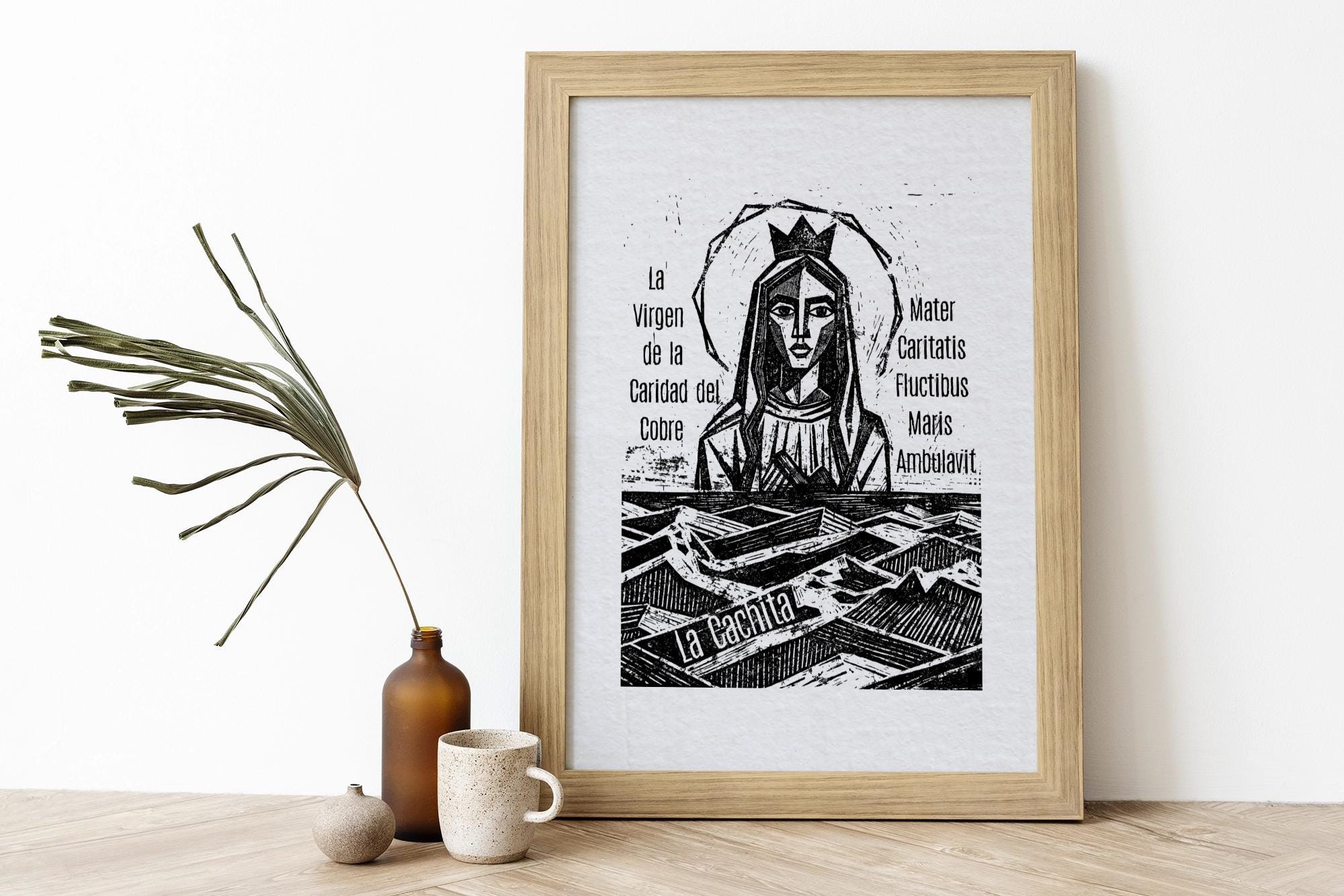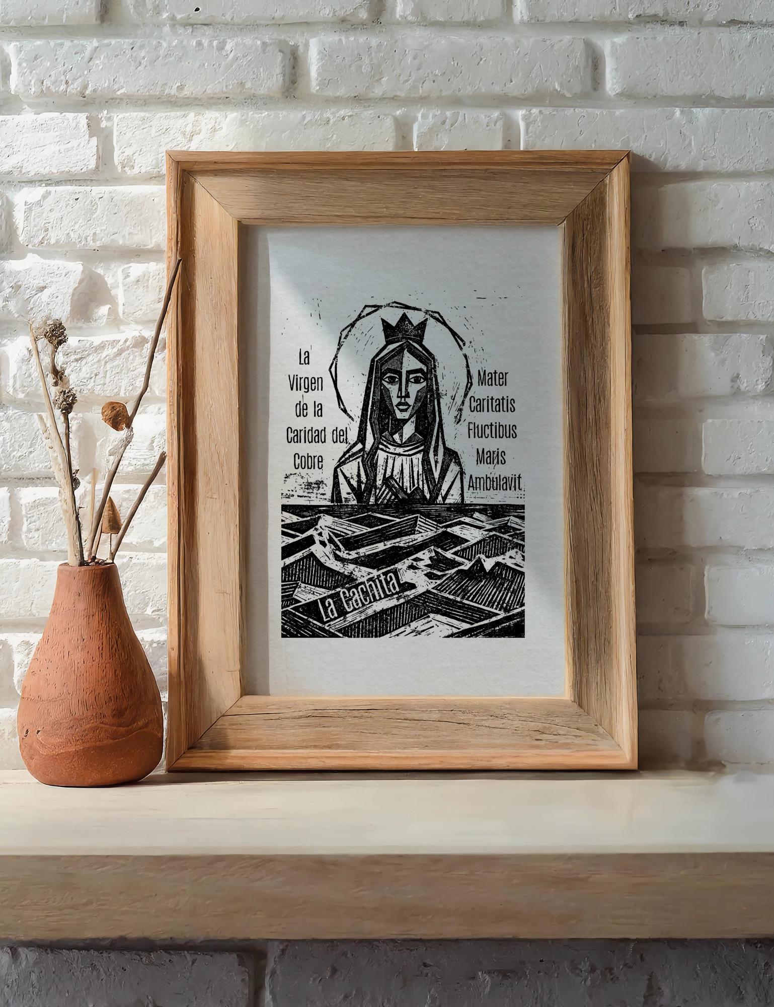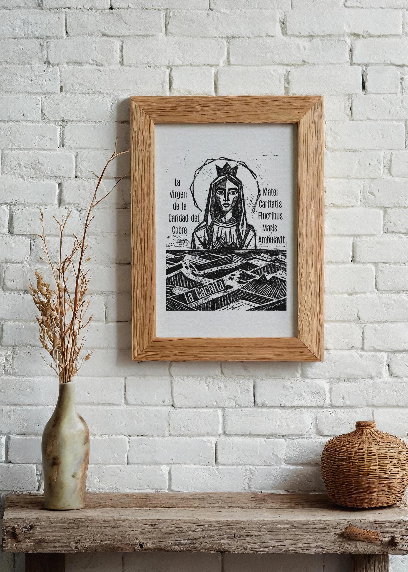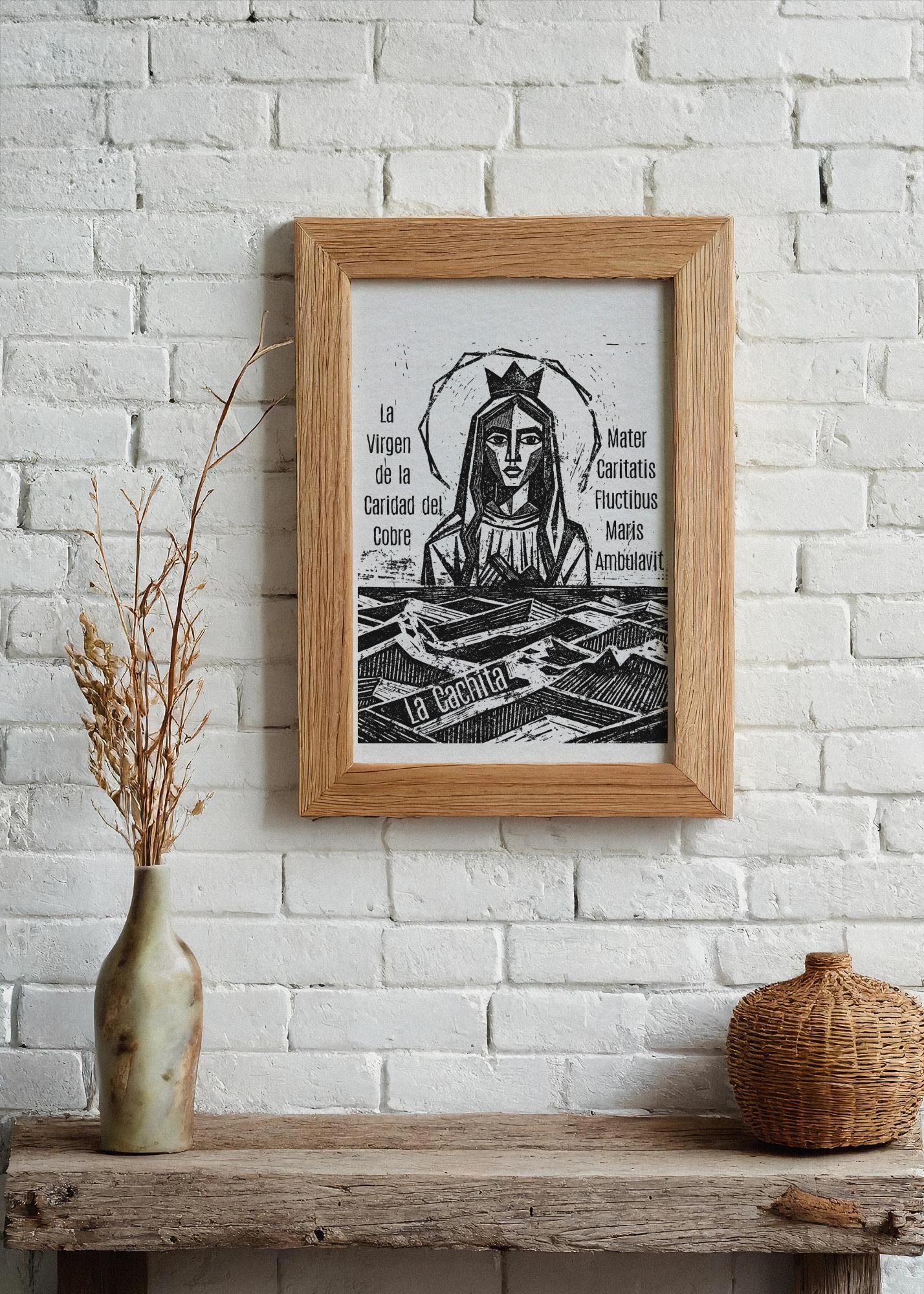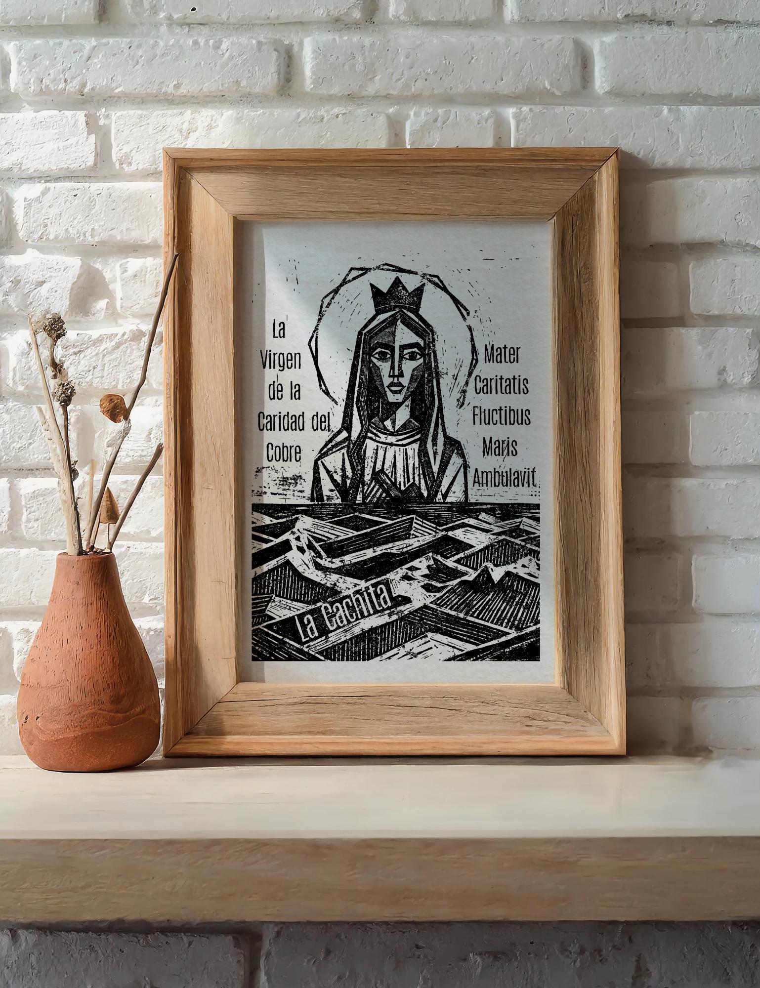 La Cachita, Our Lady of Charity | The Virgin of La Caridad del Cobre, Mother Mary, Relief Print 6x8 Inch