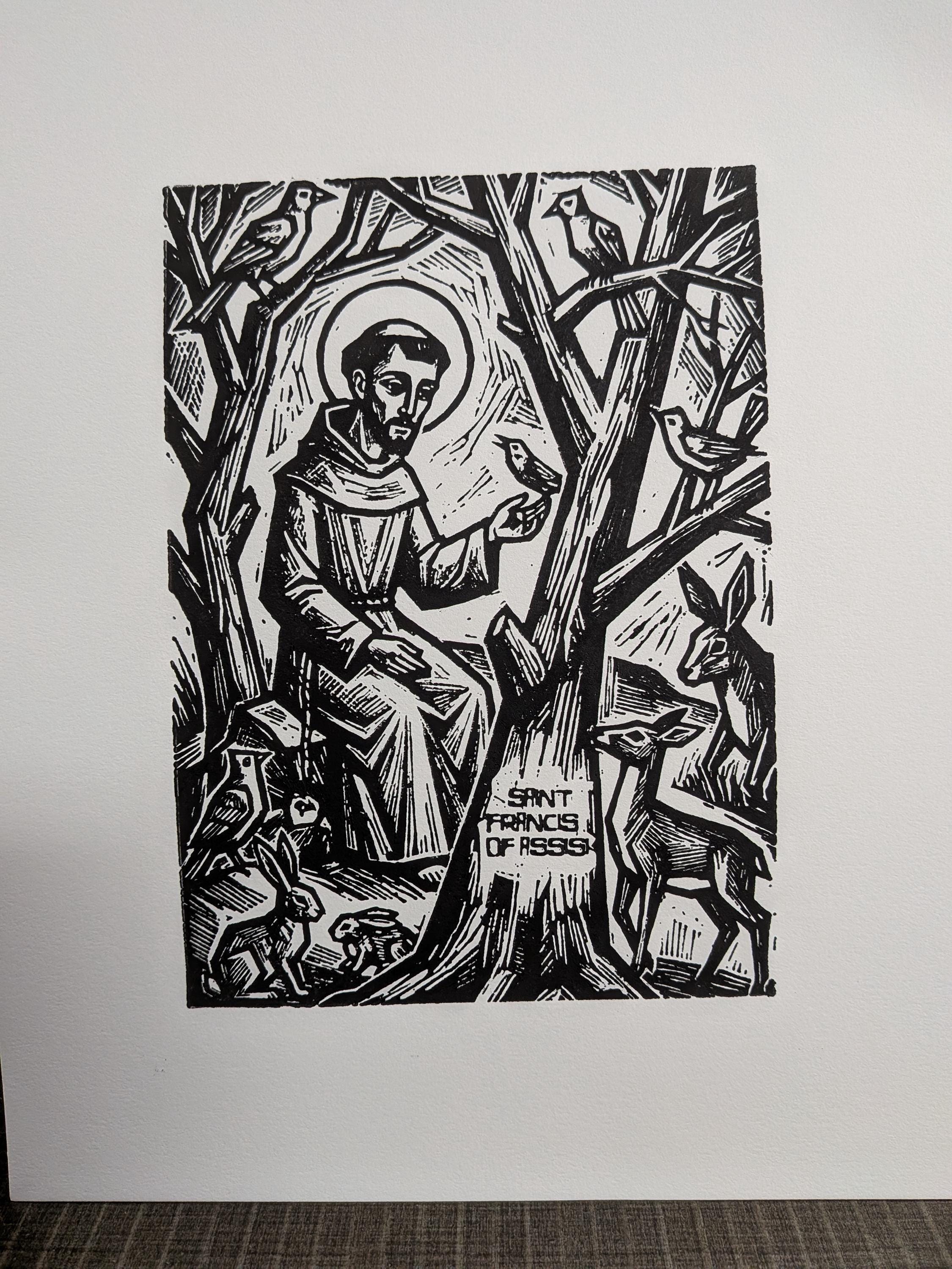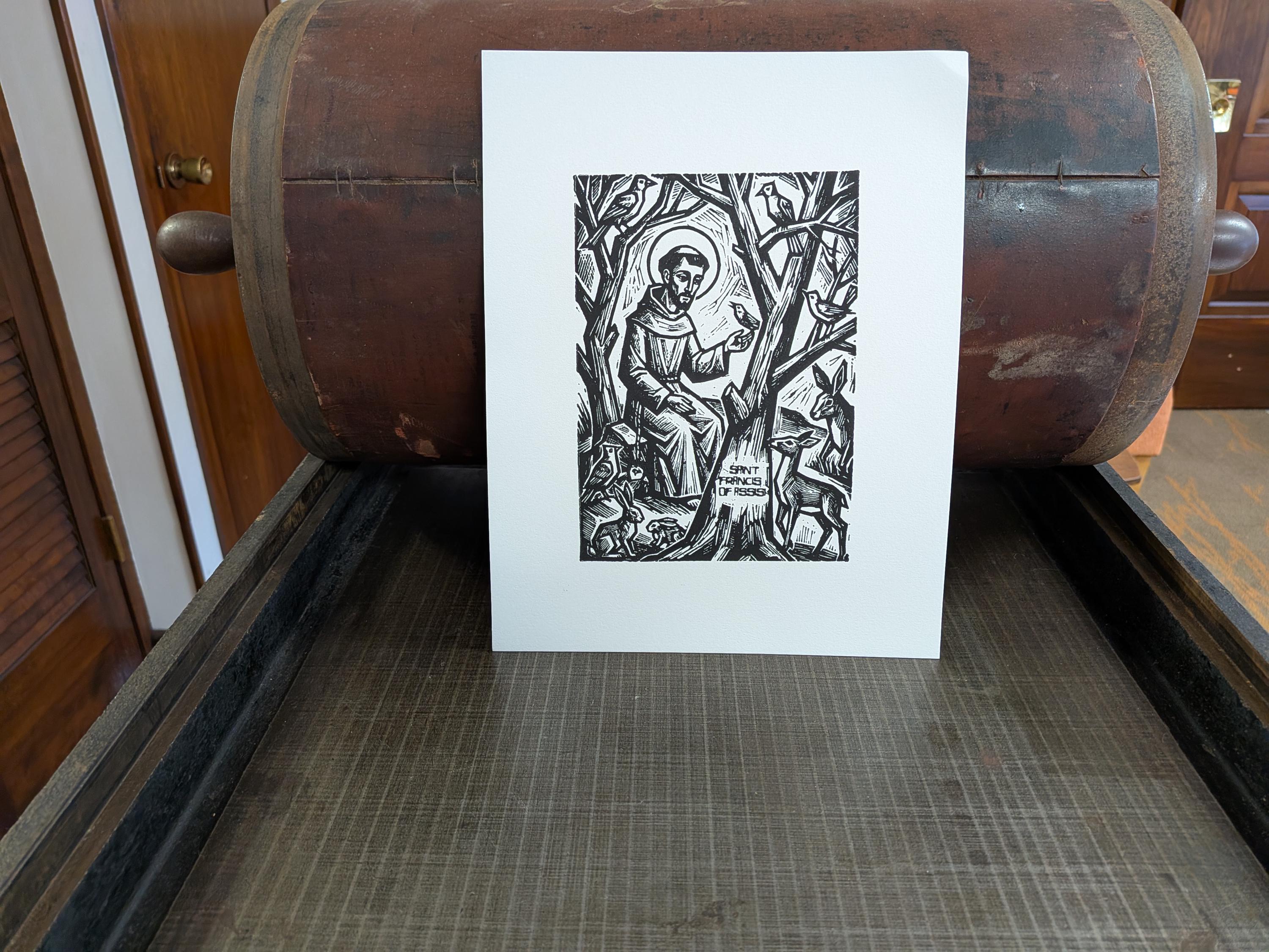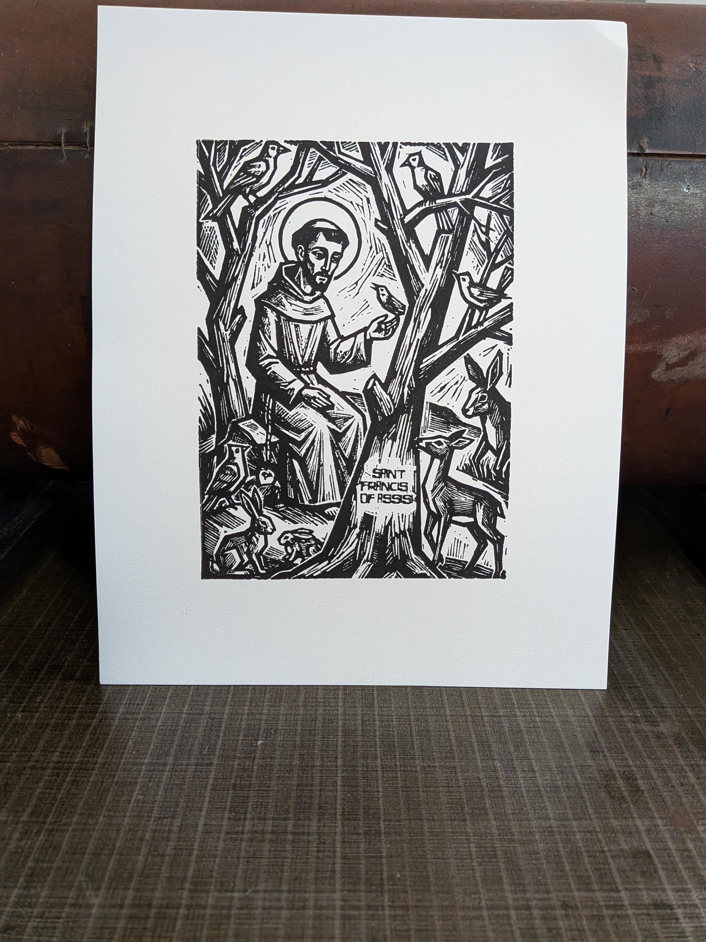 Saint Francis of Assisi, In the Woods, Block Relief Print, 5x7 inches