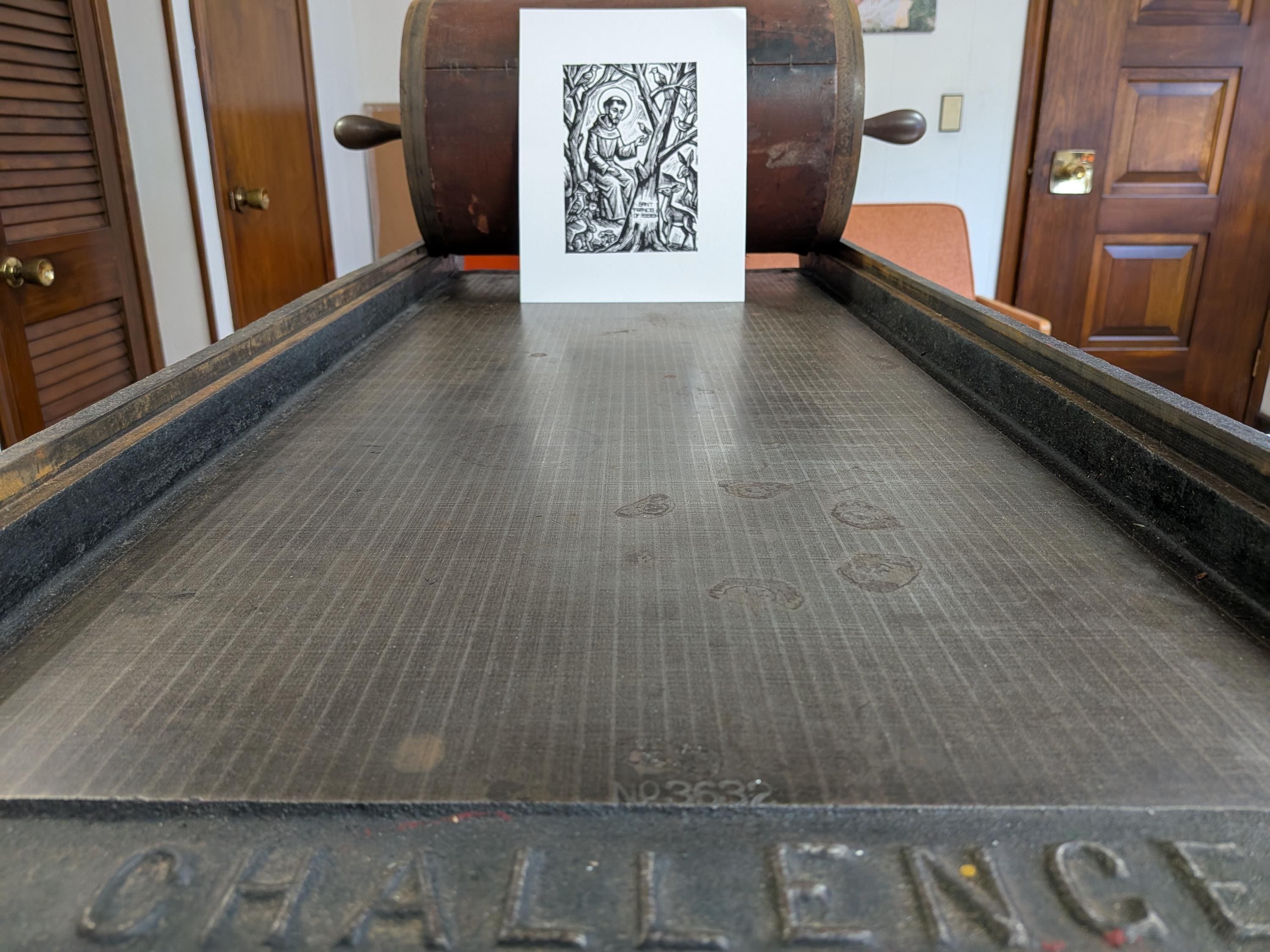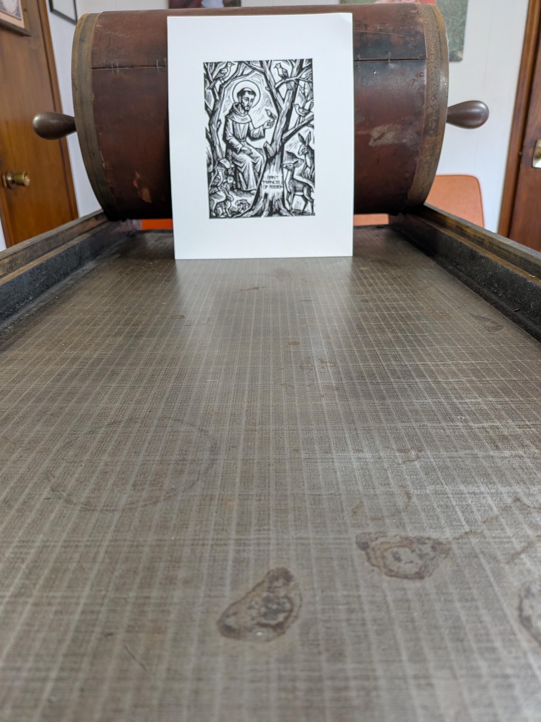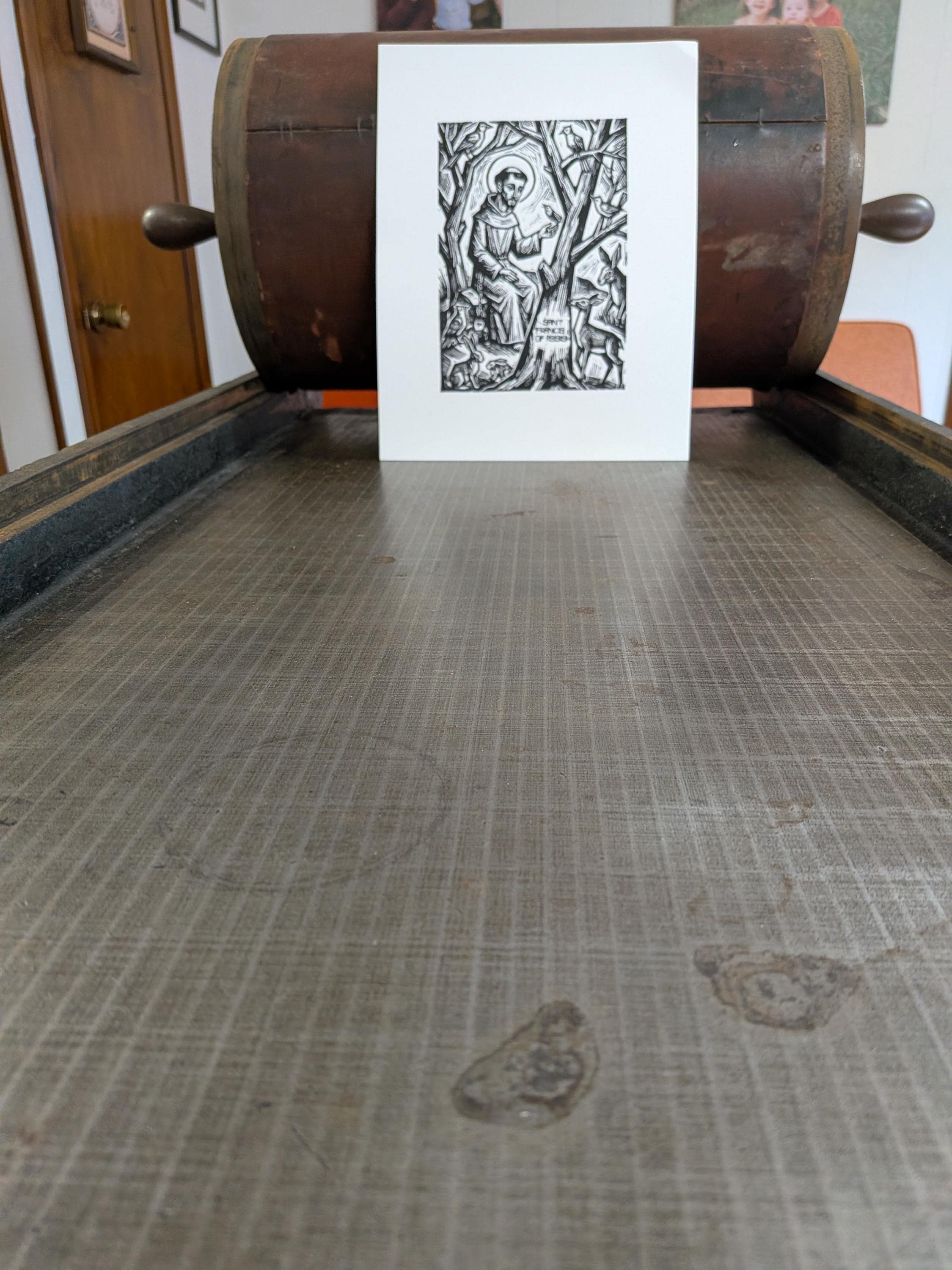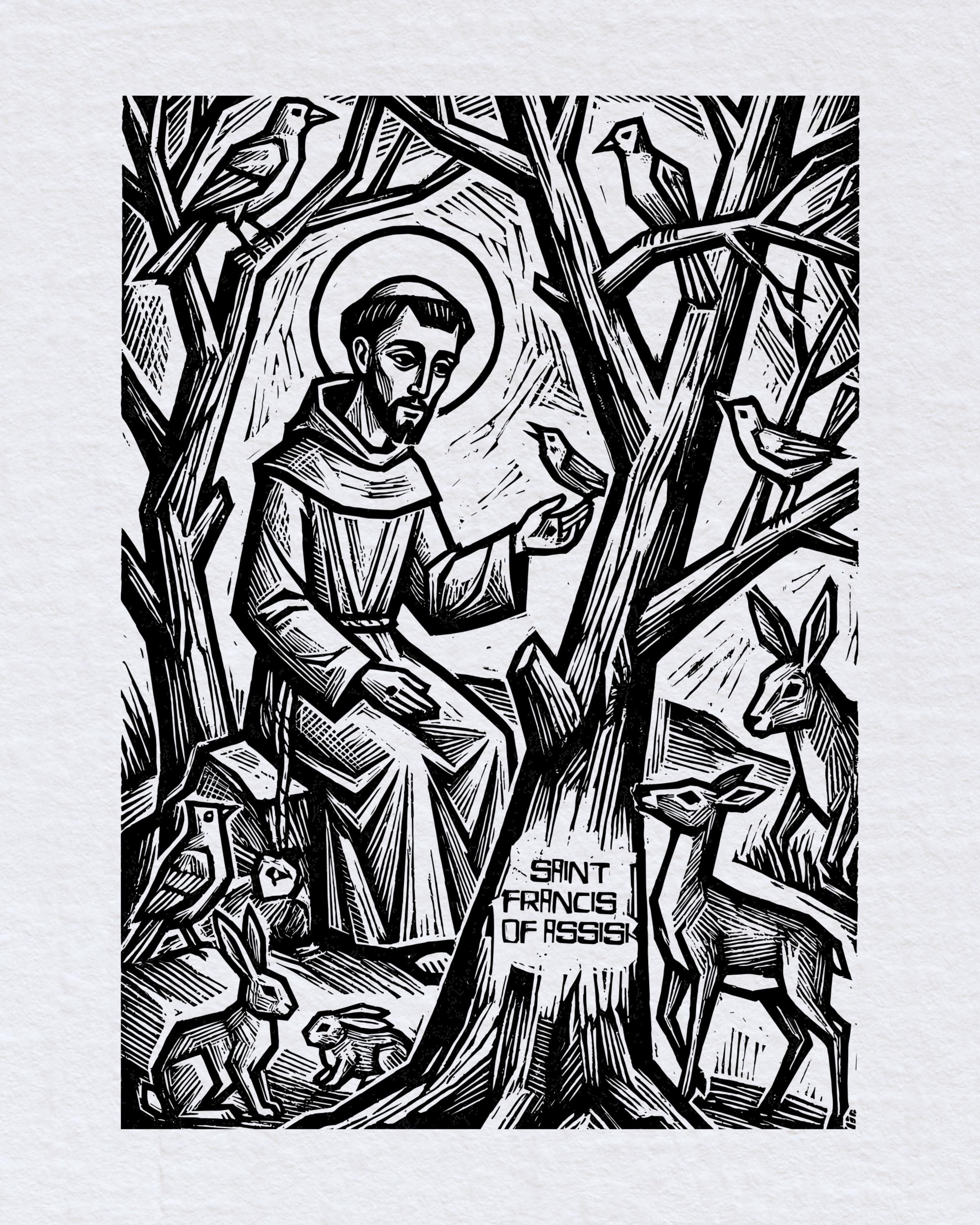Saint Francis of Assisi, In the Woods, Block Relief Print, 5x7 inches