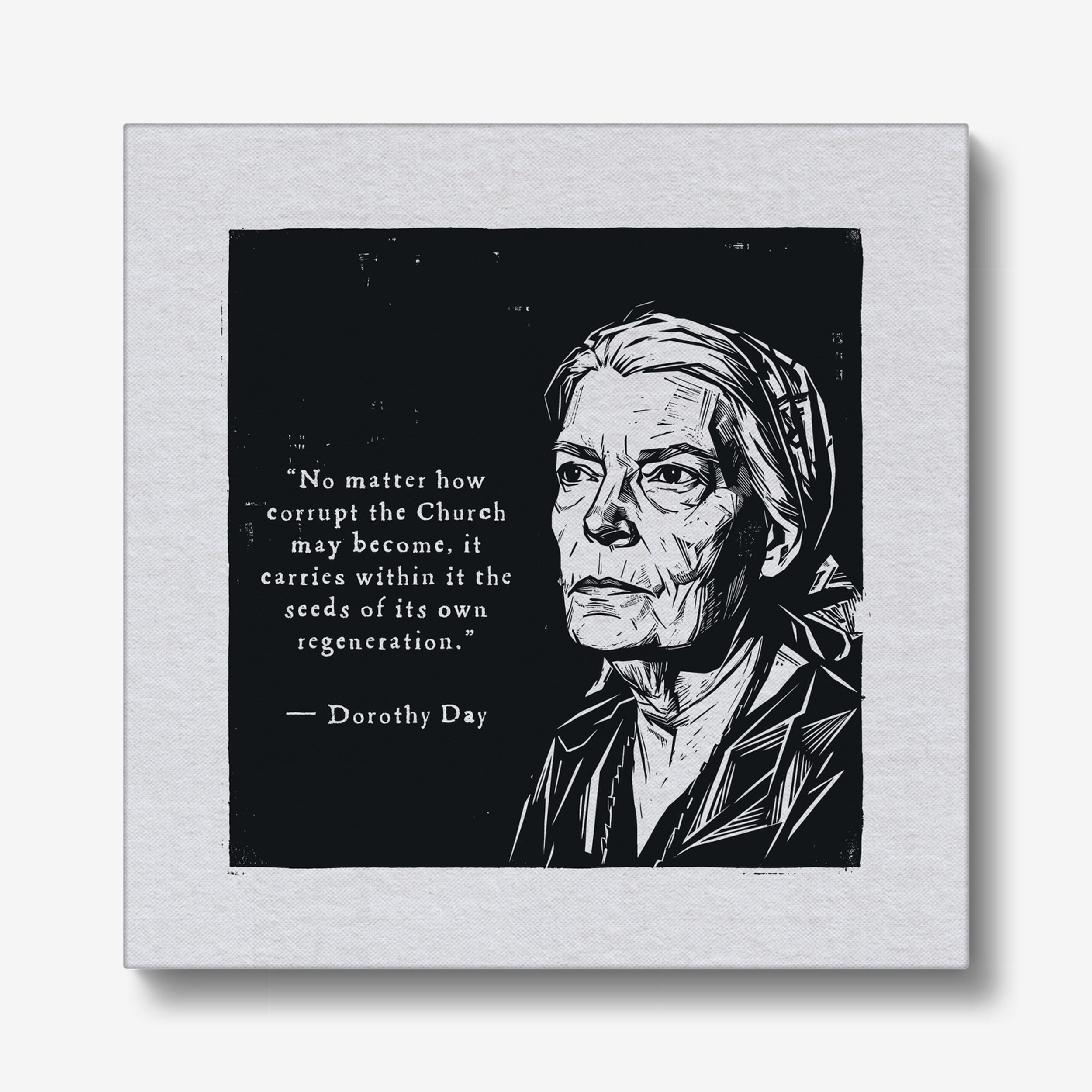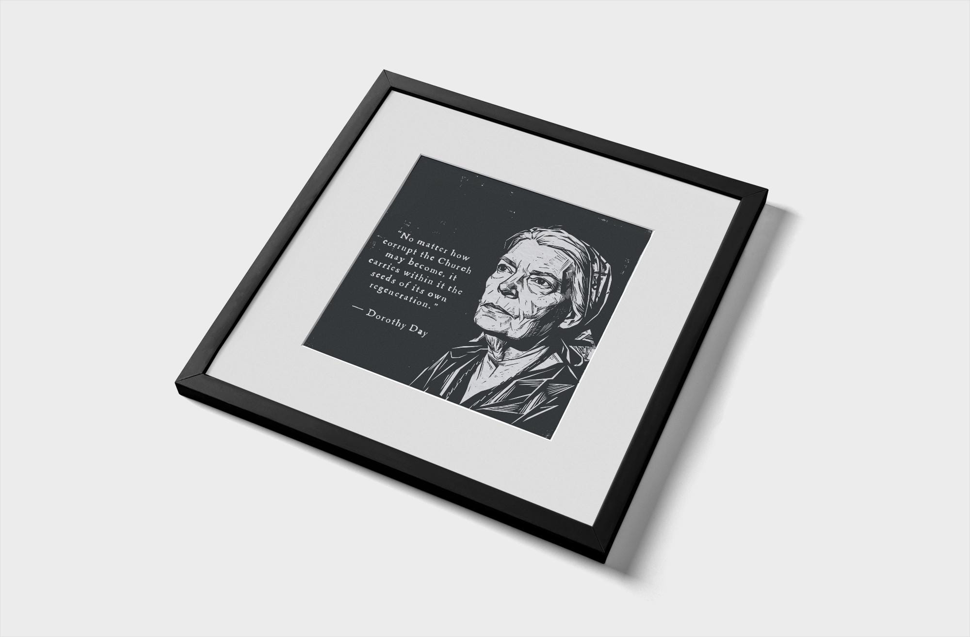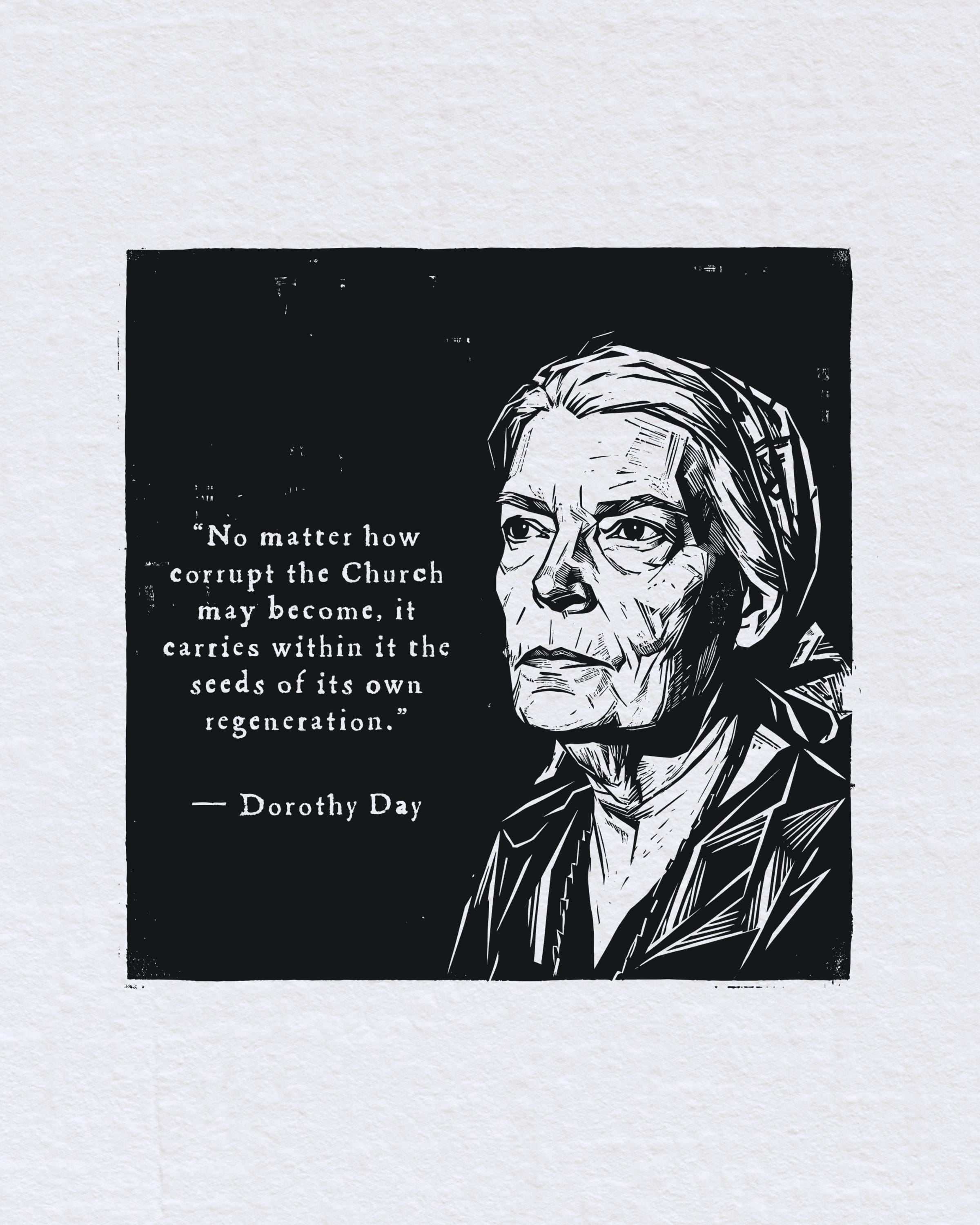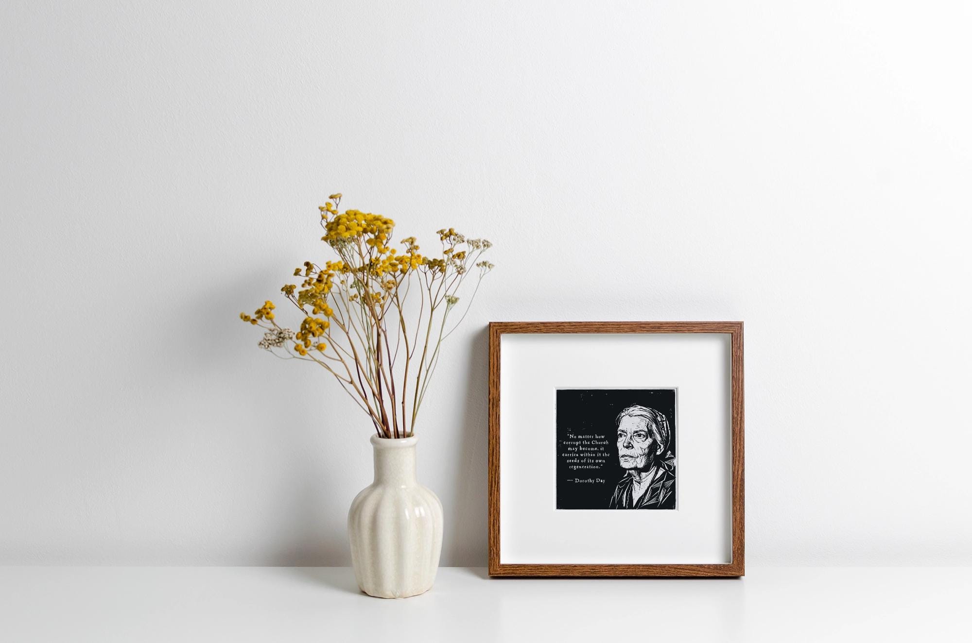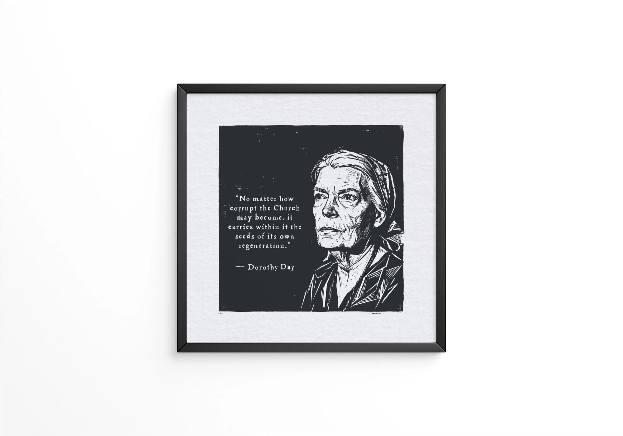 Dorothy Day Portrait and Quote About the Church, 6x6 inch Relief Print